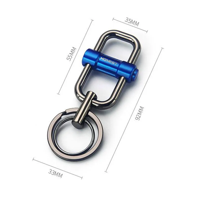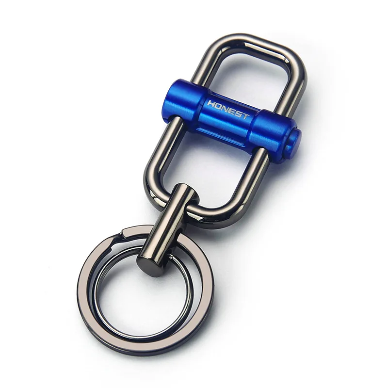 Experience the perfect blend of style and functionality with this this classy, unisex metal keychain. Its sleek design features a polished, silver-colored oval ring, providing a shiny surface that's durable and easy to grip. Attached is a rectangular black component with a matte or semi-gloss finish, giving it a sophisticated look. A vibrant, anodized aluminum blue tube runs horizontally across, engraved with “HONEST” in a light color, adding a bold splash of color and contrast. Compact, measuring approximately 3-5 cm, it’s ideal for everyday use, whether for personal accessories or as a thoughtful gift. With its modern aesthetic and versatile theme options, this keychain effortlessly complements any style or collection, elevating your everyday carry.
