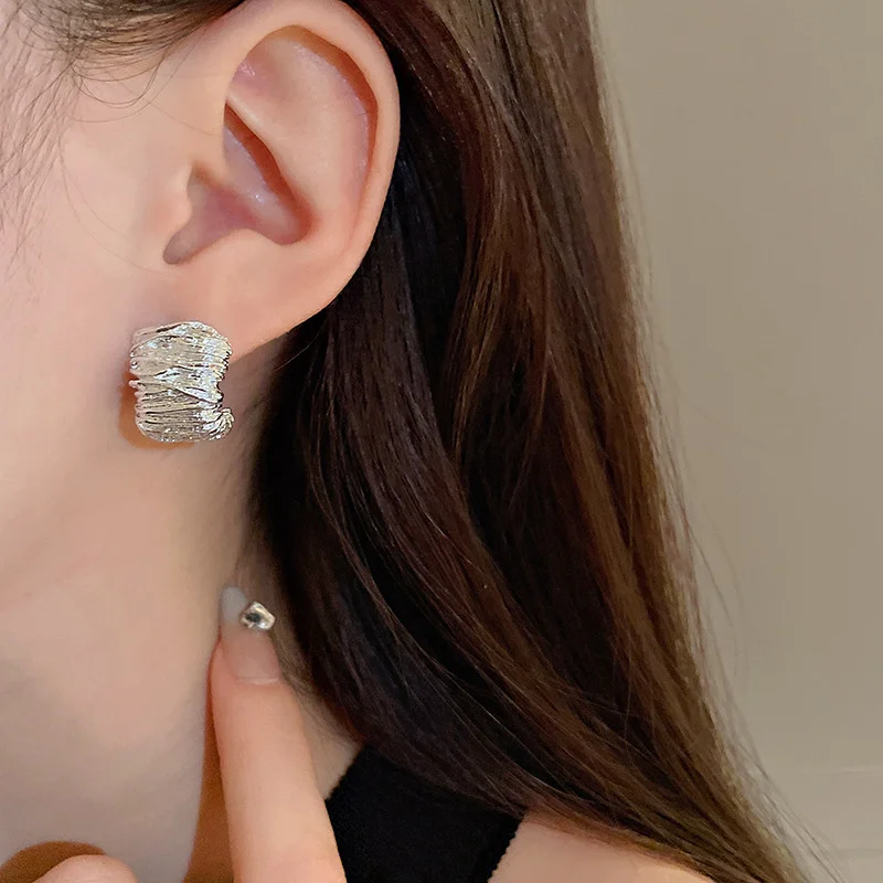 - Crafted from zinc alloy, these earrings boast durable quality with a textured, layered grain pattern for visual depth and elegance.