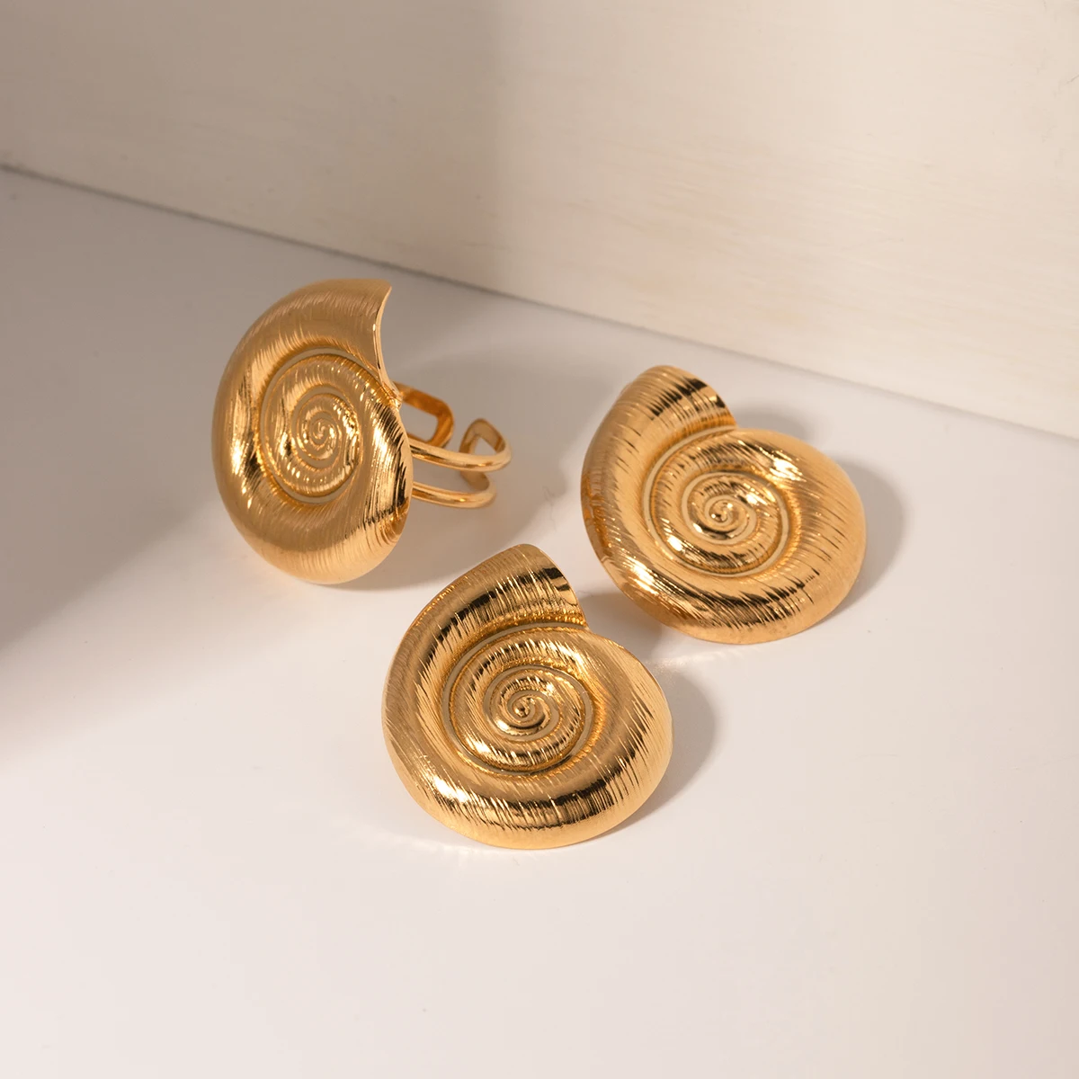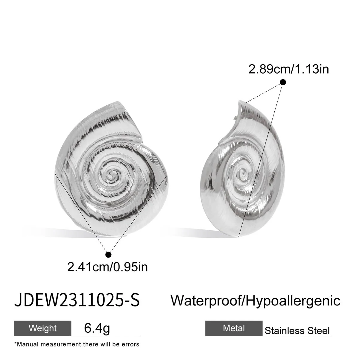 - Designed as trendy, statement stud earrings with a textured spiral shape resembling seashells, perfect for adding a bold touch to casual or formal styles.