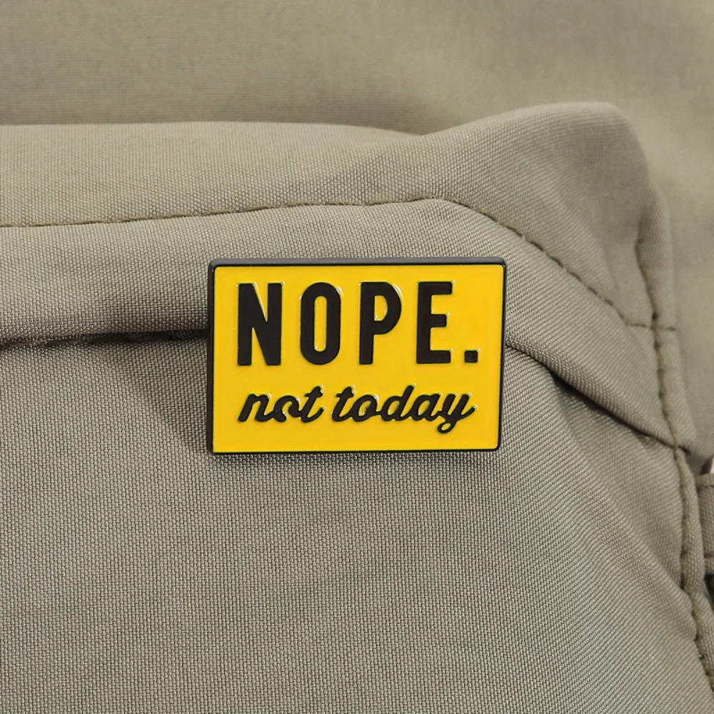 Imagine adding a playful yet assertive touch to your everyday style with this striking brooch. Featuring a vibrant yellow background, it showcases the message “NOPE.” in large, glossy black letters that immediately catch the eye. Beneath, in a relaxed cursive, are the words “not today,” adding a humorous and casual vibe. Encased in a sleek black border, this accessory combines retro, punk, gothic, and trendy aesthetics, making it perfect for jackets, backpacks, or hats. Crafted from durable alloy metal, it measures approximately the size shown in the figure, ensuring a versatile, lightweight addition to your wardrobe. Its cheerful design embodies confidence, fun, and individuality, effortlessly elevating your fashion statement.