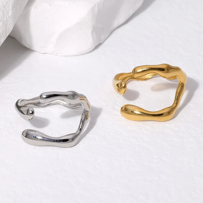 Experience the striking allure of this trendy stainless steel ring designed for women who love making a statement. Its irregular, hollow openwork structure creates a wide, sculptural silhouette that exudes modern elegance. The flowing, organic contours lend an artistic and punk-inspired aesthetic, perfect for parties or special occasions. Crafted from high-quality stainless steel with a polished, shiny finish, this ring reflects light beautifully, emphasizing its unique design. Its versatile style combines edgy flair with minimalist sophistication, making it an ideal accessory to elevate your fashion game. Imagine yourself confidently wearing this eye-catching piece, turning heads and expressing your individual style effortlessly. Elevate your jewelry collection today with this one-of-a-kind designer ring.