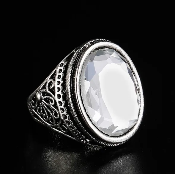 Imagine accessorizing with this stunning set of two fashion rings, perfect for both men and women who want to make a statement. These rings feature hollow carved designs adorned with dazzling crystal rhinestones set in a bezel style. The large artificial gemstones, available in vibrant white, blue, purple, or black, add a pop of color and elegance. Crafted from durable zinc alloy with a sleek rhodium finish, these rings boast a trendy punk and cocktail aesthetic, ideal for parties or gift-giving. The adjustable sizes from US 7 to 10 ensure a comfortable fit. With their eye-catching mosaic-like pattern and wide ranging sizes, this set elevates any outfit with sophistication and edgy charm.