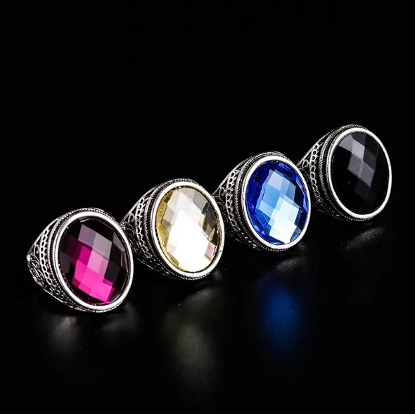 - Features hollow carved patterns with round artificial gemstones bezel-set, available in vibrant color options: white, blue, purple, and black for striking contrast.