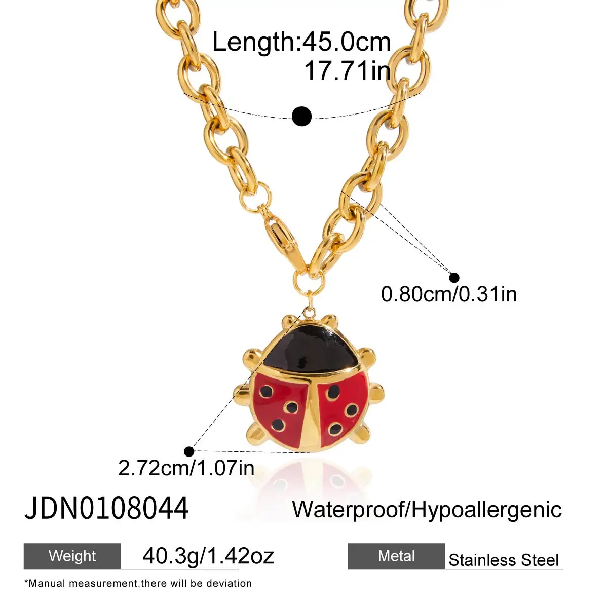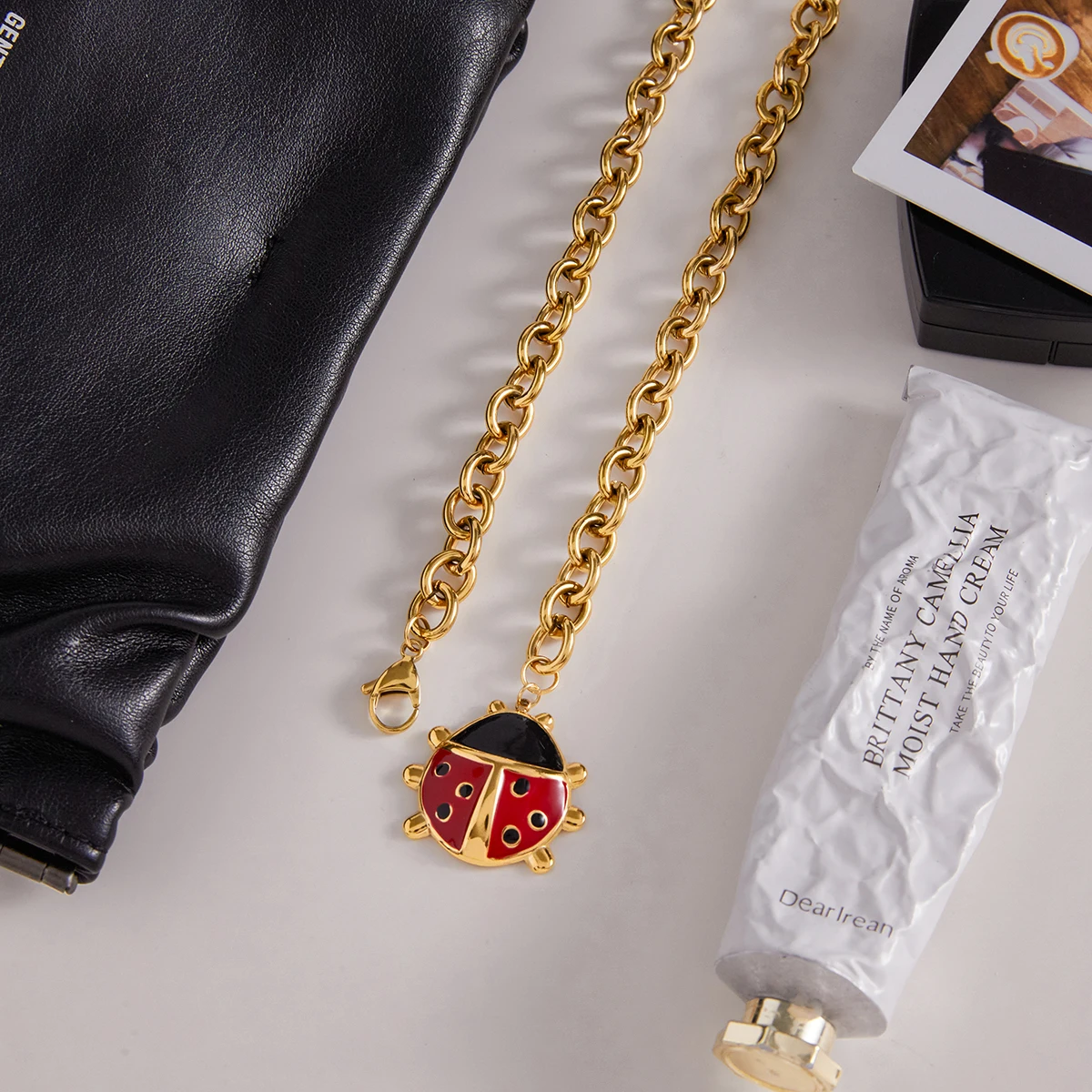 Step into the world of fashionable accessories with this eye-catching Y2K ladybug pendant necklace. Whether you're dressing up for a party or adding a whimsical touch to your casual attire, this necklace is designed to turn heads. Its durable stainless steel construction guarantees lasting beauty, while the bold design reflects your playful personality. Treat yourself or gift it to a loved one who appreciates unique, stylish jewelry—confidence and charm are just a wear away. Make your style statement today with this irresistible, trendsetting piece.