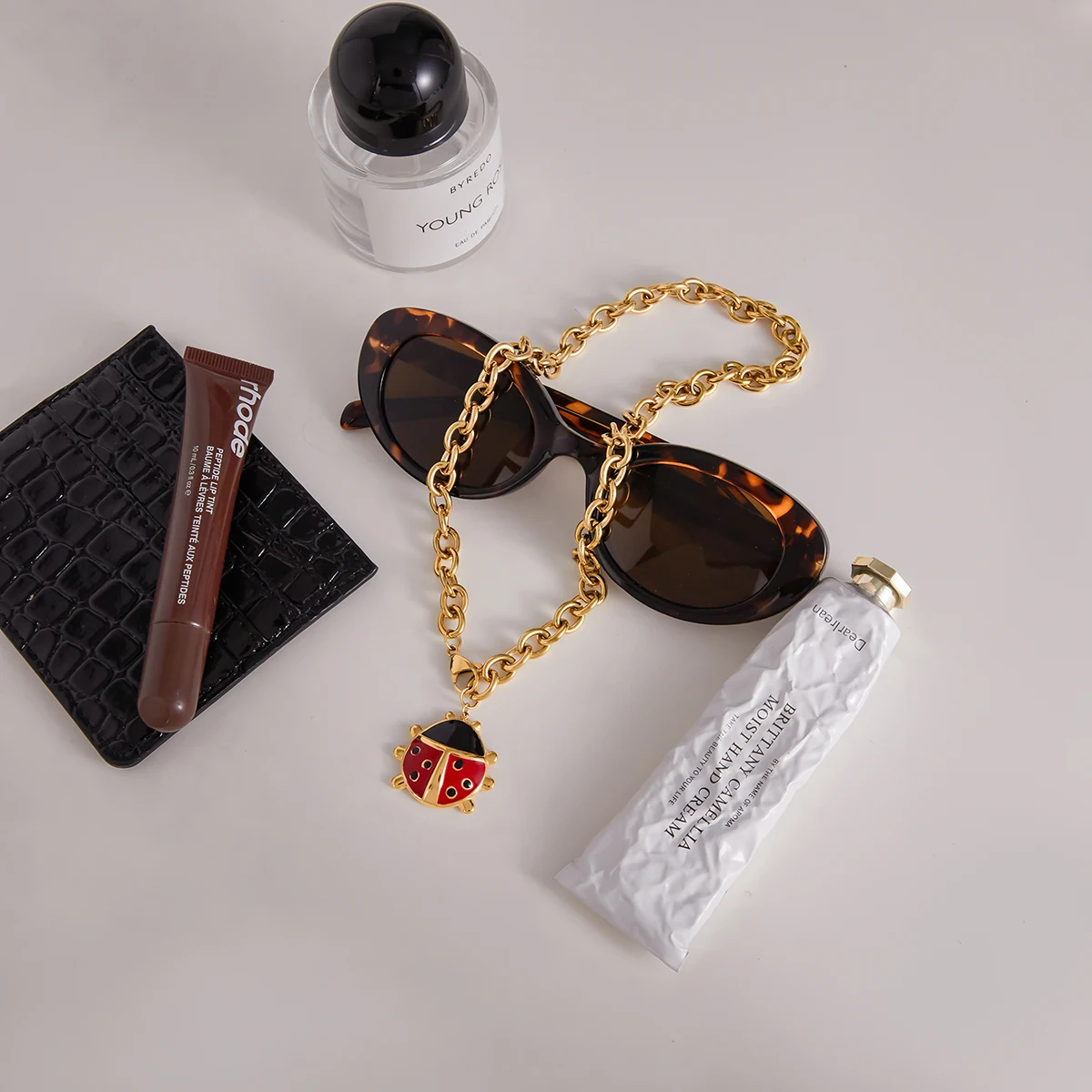 Imagine owning a necklace that combines playful charm with trendy elegance. This Y2K-inspired pendant necklace features a vibrant red, three-dimensional ladybug with black spots, outlined in a shiny gold-tone. The design showcases a unique dripping oil effect, adding a touch of edgy sophistication. Crafted from durable stainless steel, it offers long-lasting beauty without tarnishing. The chunky link chain complements the pendant perfectly, creating a bold statement piece for any occasion. Envision yourself wearing this standout accessory at parties or casual outings, enhancing your fashion-forward look effortlessly. Its versatile style pairs seamlessly with various outfits, making it a must-have for those who love playful yet stylish jewelry that makes an impression.