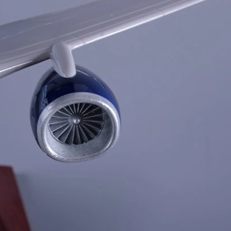 - Crafted from fragile alloy material, this model is a non-electric, collectible display piece designed for enthusiasts, featuring smooth surfaces, realistic engine details painted dark blue, and a sturdy wooden base with a glossy finish.