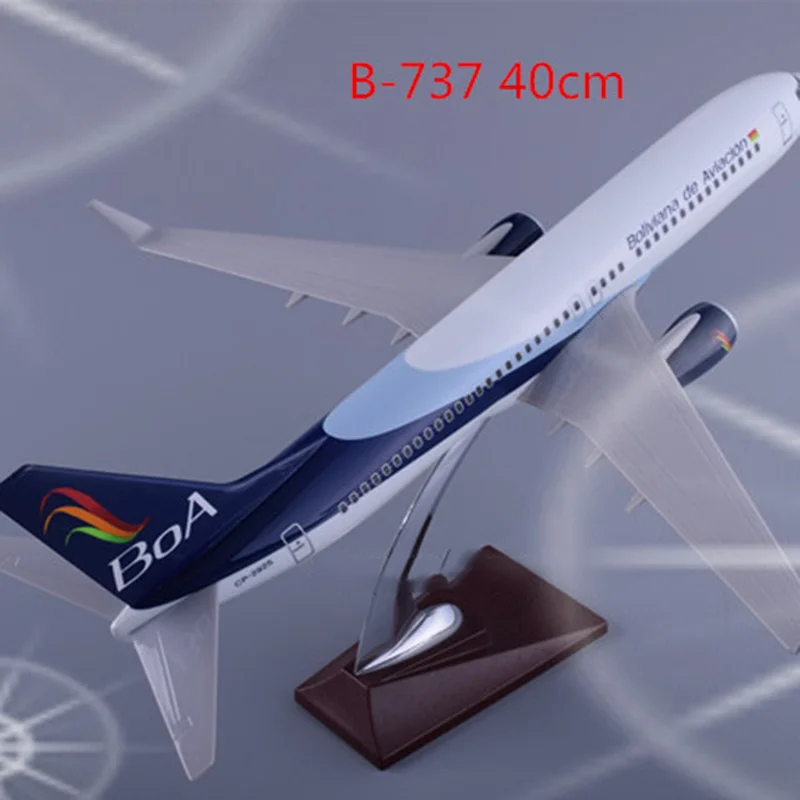 - This detailed model measures approximately 40 cm in length, showcasing precise proportions and distinctive features of the Boeing 737 aircraft at a 1:172 scale. Its alloy construction provides a shiny, metallic appearance.