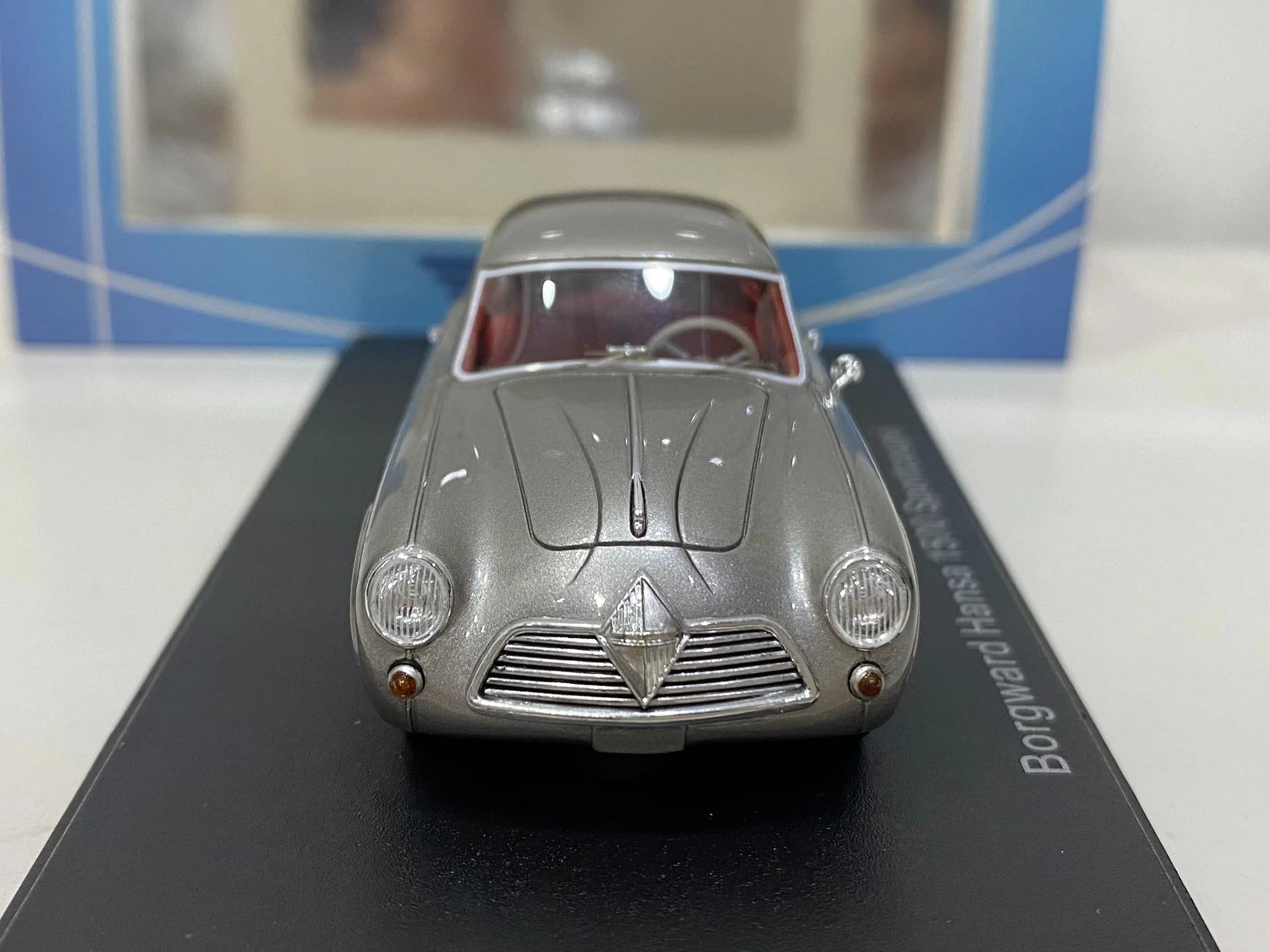 Experience the elegance and vintage charm of this meticulously crafted diecast resin model of the Borgward Hansa 1500 Sport Coupe. Sized at 1:43 scale, it perfectly captures the sleek flowing curves and aerodynamic silhouette of the original car. Its polished metallic silver finish adds a sophisticated touch, while detailed windows and subtly sculpted door and trunk outlines enhance realism. The realistic wheel rims with scaled-down tires reproduce the aesthetics of a classic sporty vehicle. Designed purely for display, this static model offers a refined collectible for enthusiasts. It’s ideal for showcasing on shelves or in display cases, allowing you to enjoy the vintage automotive design every day. A true tribute to iconic car history, ready to elevate your collection.