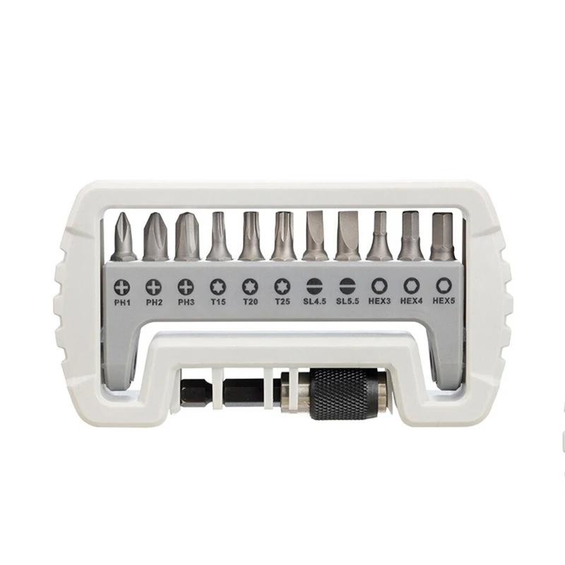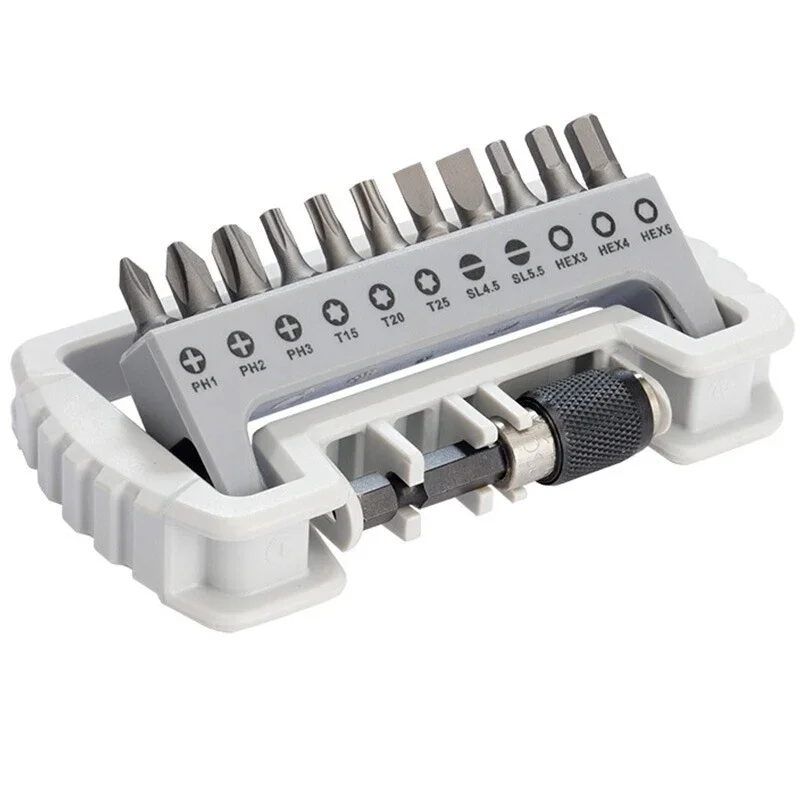 - This set includes 11 standard screwdriver bits and 1 additional bit, all made of durable high-speed steel designed to withstand heavy use on electrical projects.