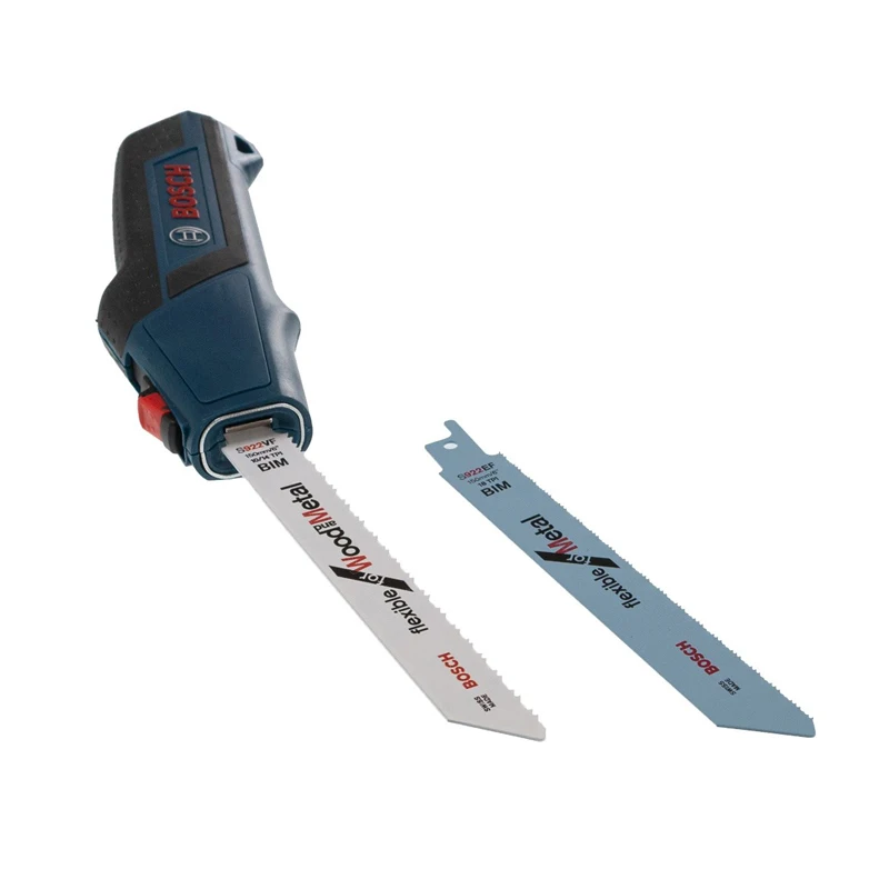 - Supplied blades include one “Flexible for Metal,” with straight, fine teeth ideal for metal pipes, and one “Flexible for Wood and Metal,” optimized for rapid cuts in multiple materials.