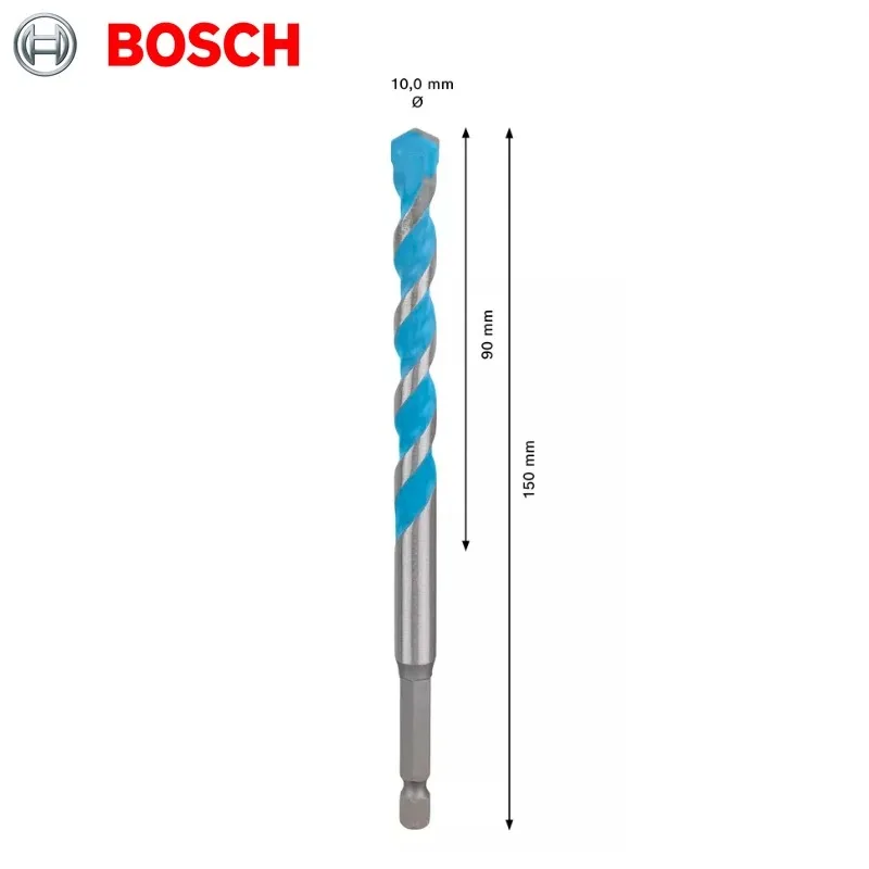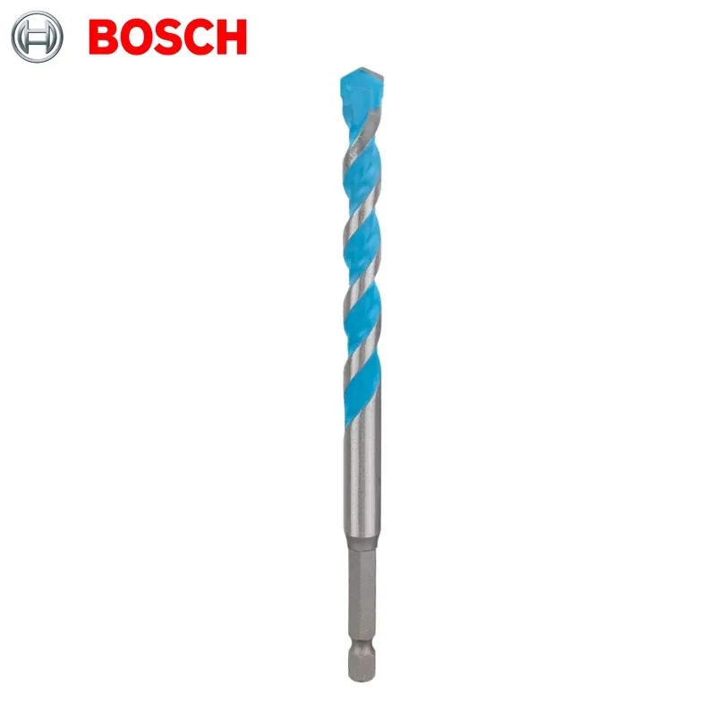 Experience professional-grade drilling with this Bosch EXPERT HEX-9 Multi Construction Drill Bit. Designed for impact and rotary drills as well as screwdrivers, this tool guarantees high precision and durability across various materials. Its sleek, metallic silver finish combined with a spiral flute design ensures smooth, efficient motion during operation. The pointed centring tip helps you start holes with pinpoint accuracy, making your work cleaner and faster. The bold, vibrant blue hex shank provides a secure connection, maximizing torque transmission in three-jaw chucks and ¼” impact tool holders. Whether you're tackling woodworking or masonry projects, this drill bit delivers reliable performance and a sleek aesthetic, making it an invaluable addition to your toolkit.