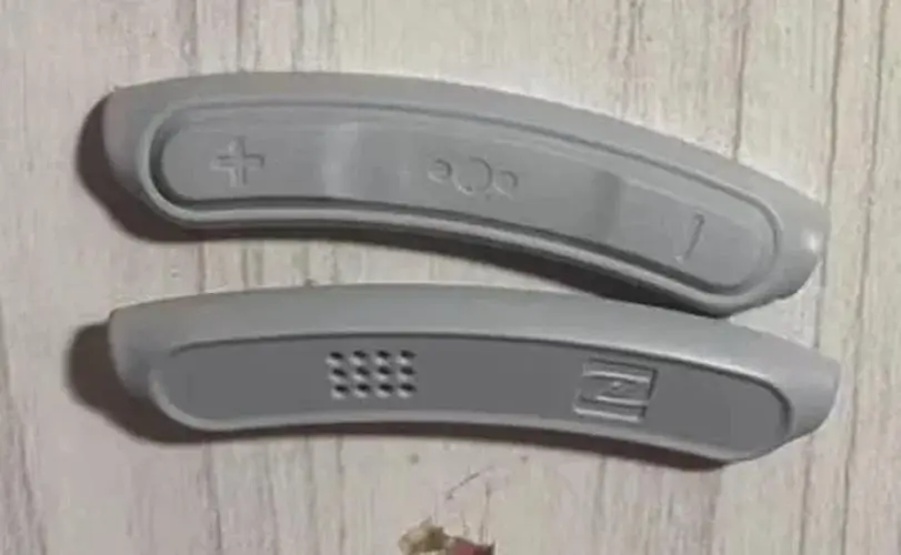 - Component set features an oval-shaped control module, silicone ear tips, and a metallic-finish battery cover for functional upgrades.