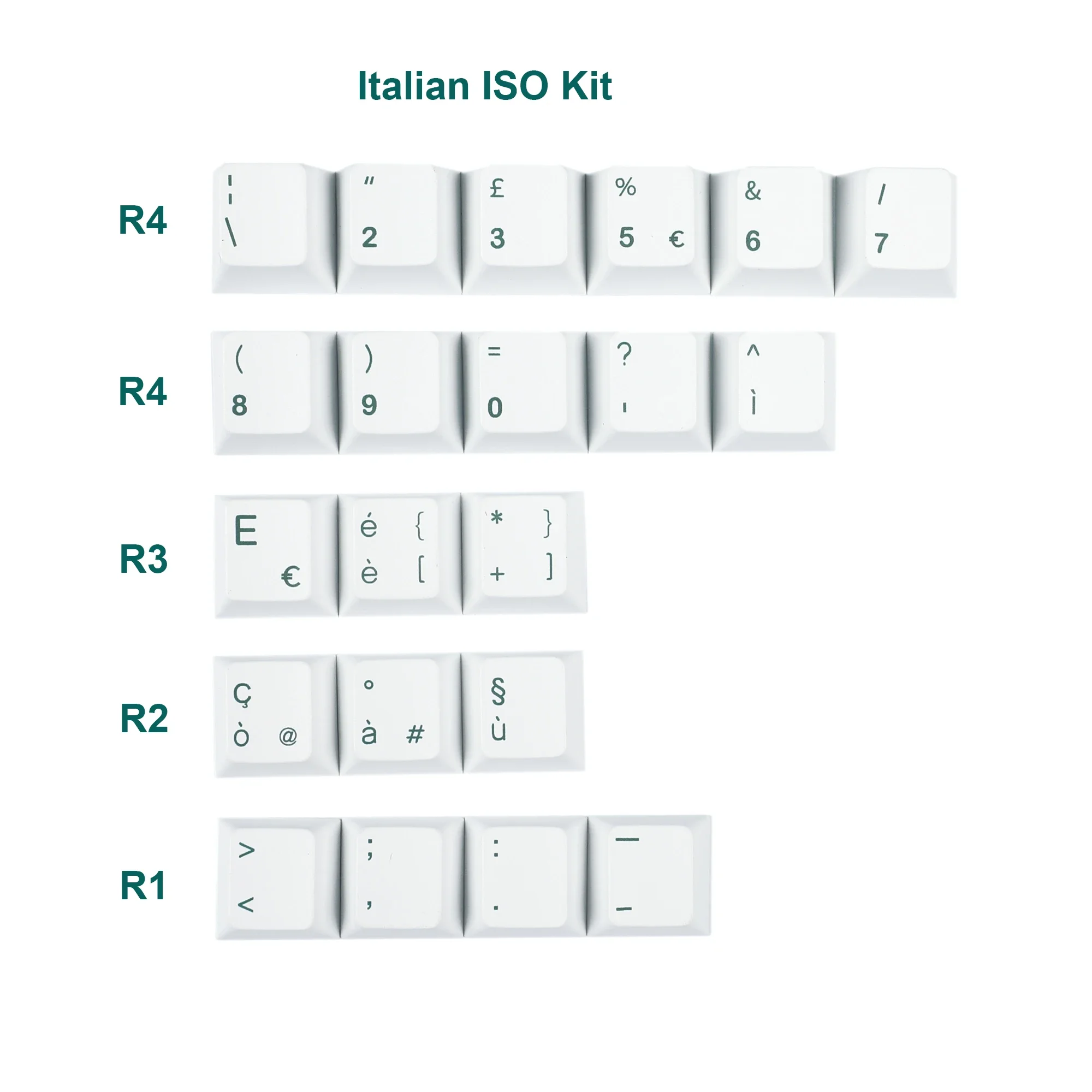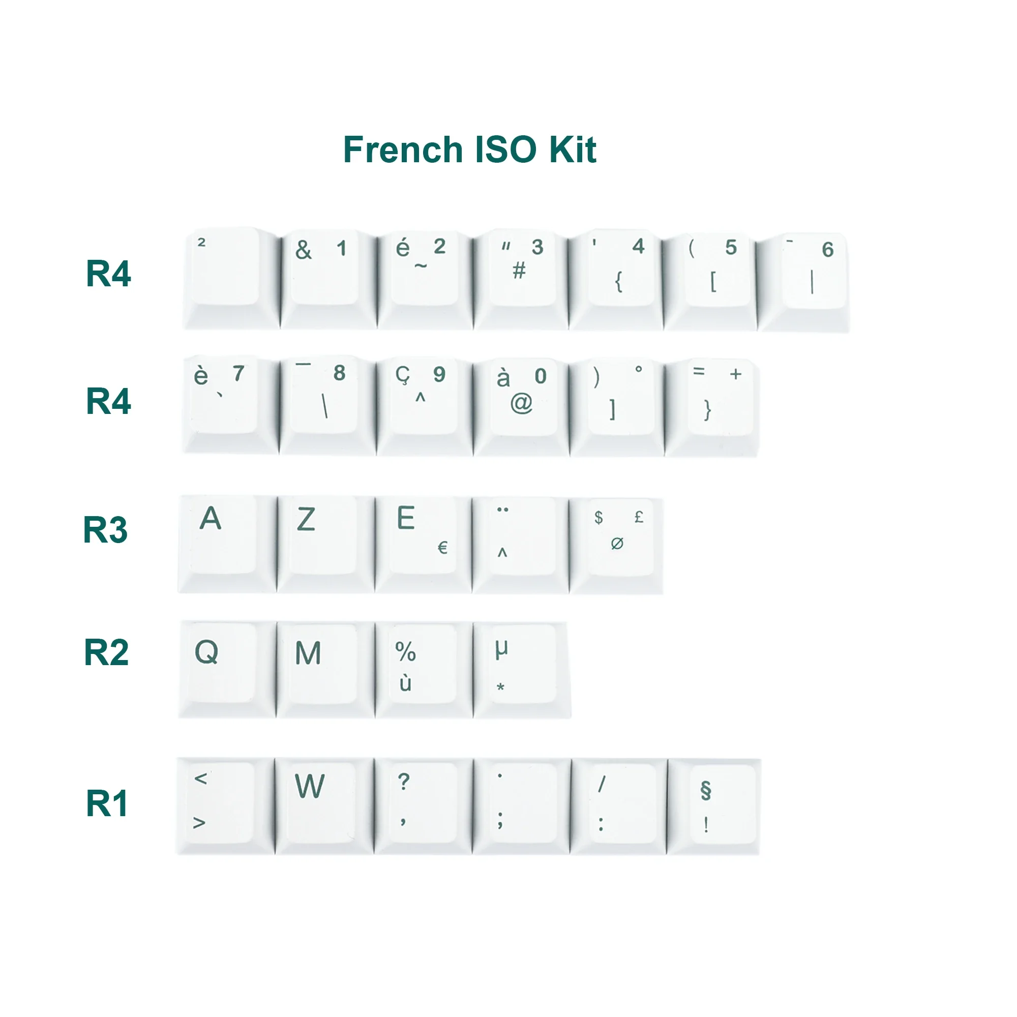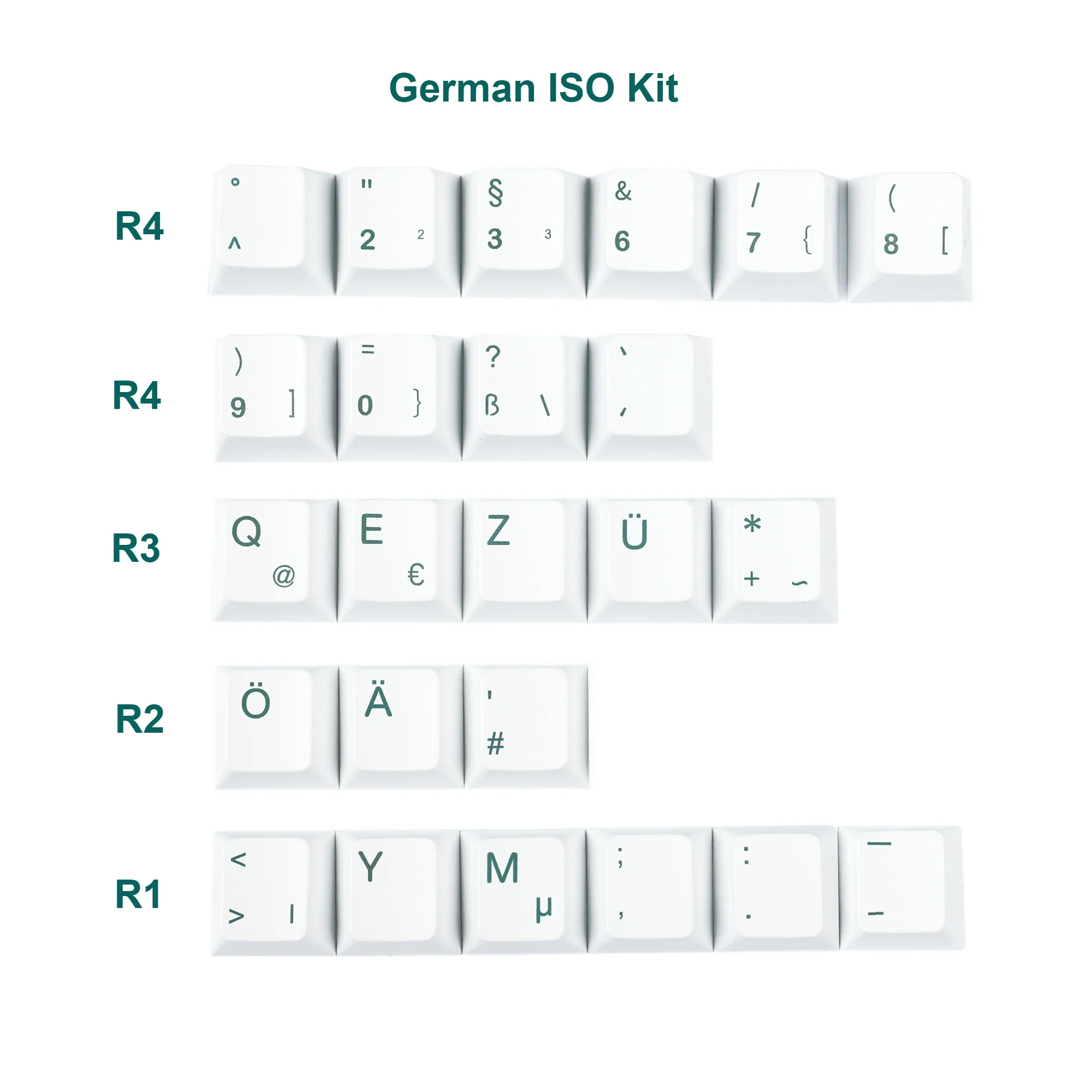 Enhance your mechanical keyboard with this set of 144 durable PBT keycaps, approximately 1.8mm thick, featuring dye-sublimation printing for sharp legends and botanical-themed icons. Designed in GMK style with a textured matte finish, these keycaps are compatible with Cherry MX switches and fit various layouts including 96%, 104, 87, 68, and 64, accommodating bottom row configurations of 1.25u, 6.25u, and 1.5u. The set includes a base kit with ANSI ISO keys and optional ISO-specific kits for French, German, Italian, Spanish, and UK layouts. Specially crafted to suit north/south facing PCBs, they offer a refined, natural aesthetic perfect for custom keyboard enthusiasts.