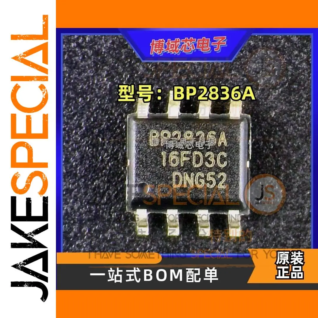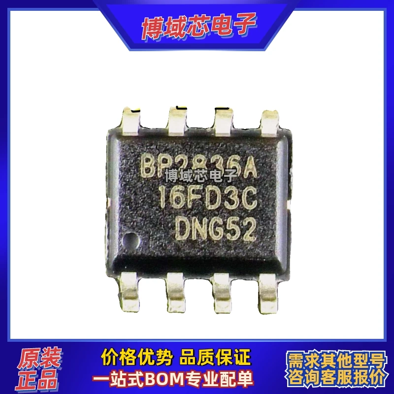 Experience reliable performance with this high-quality BP2836A switch, thoughtfully designed for precision electronic applications. Each unit features a sleek black rectangular housing with a smooth matte finish, ensuring a modern, minimalist aesthetic. The top surface plainly displays white printings of the model number “BP2836A” along with additional identifiers like “16FD3C” and “DNG52,” offering easy identification. The metallic pins are evenly spaced along the sides and bottom, with a shiny, reflective surface ideal for secure circuit connections. Packaged as a set of 10 units in SOP8 form, this switch is perfect for professionals seeking compact, durable, and dependable components to enhance their electronic assemblies or repairs. Its streamlined design ensures seamless integration into various circuit boards.