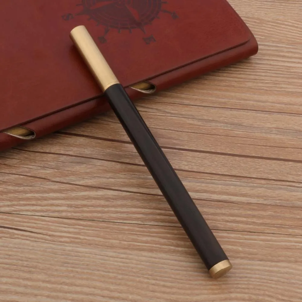 - The pen features a brass and wood construction with a polished ebony spin design for a luxurious look.