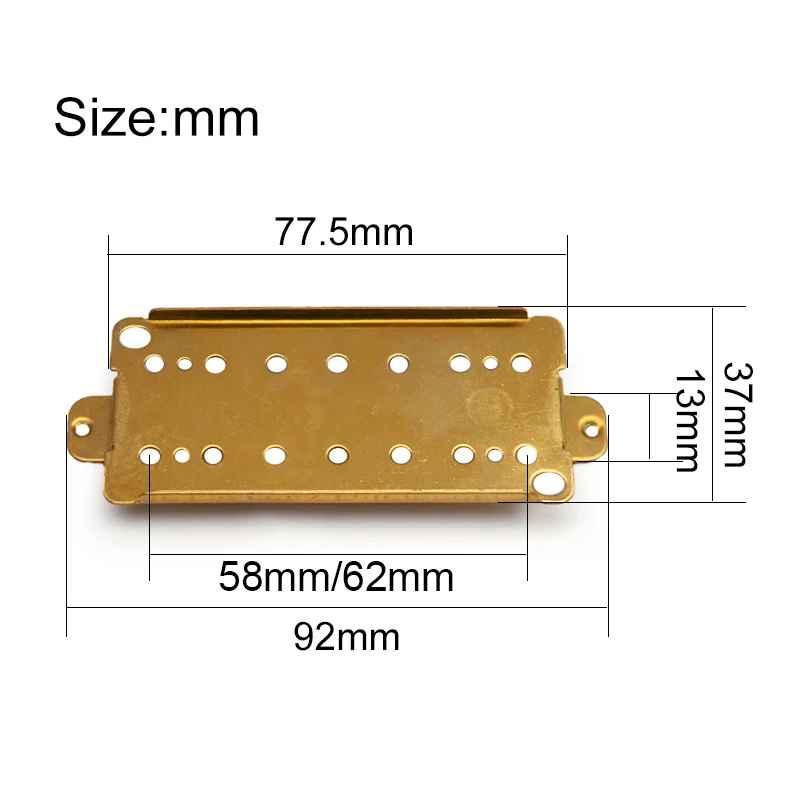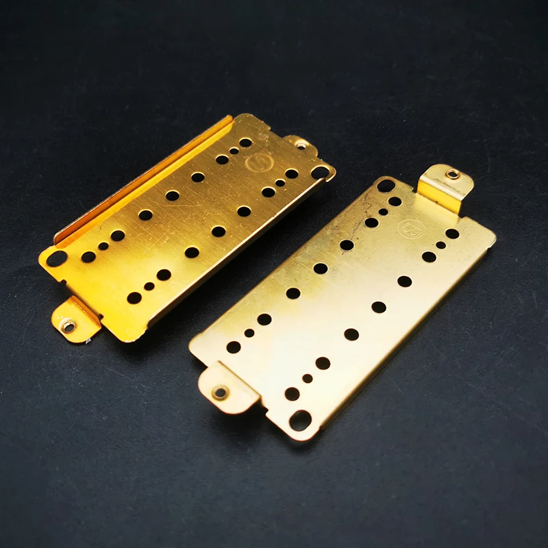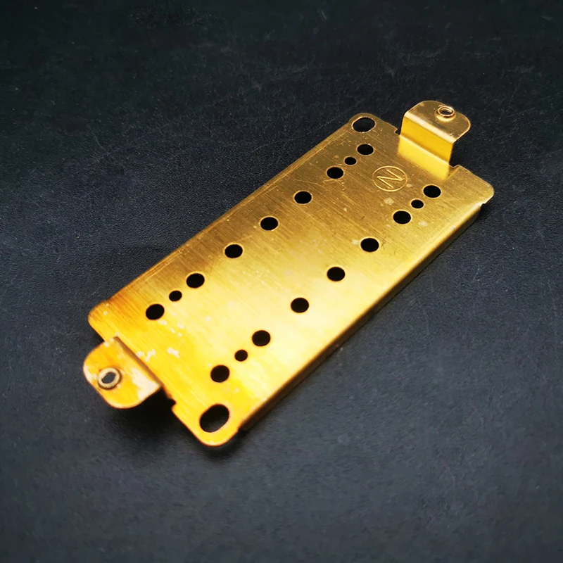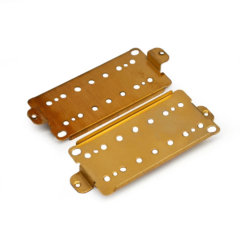 Experience the superior craftsmanship of this set of four brass baseplates, designed specifically for 7-string dual coil humbucker pickups. The polished brass finish not only ensures durability but also adds a sleek visual appeal to your guitar setup. Each baseplate is precision-engineered with rounded edges and smooth surfaces, featuring multiple strategically placed holes and tabs for secure mounting. The robust construction offers reliability, while the delicate balance between functionality and aesthetics will elevate your guitar's performance. Let these baseplates be the foundation of your customized sound and watch as they enhance your music experience.