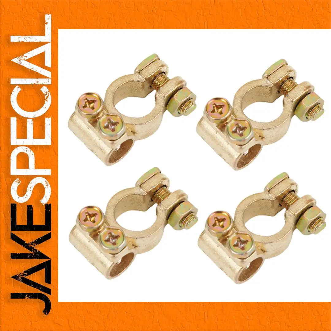 Enhance your vehicle's electrical connection with this high-quality set of brass battery terminal clamps. Crafted from solid brass with a polished finish and high copper content, these clamps provide excellent electrical conductivity. The robust tightening bolts and star-shaped screws ensure a secure, high-torque connection that keeps your battery terminals firmly in place, reducing the risk of loose contacts. Designed for quick release, these clamps are suitable for automotive, van, caravan, and motorhome batteries, offering reliable performance under demanding conditions. Available as either a set of two or four, you can customize your installation for positive and negative terminals. Their durable, sleek design combines practicality with a polished aesthetic, making maintenance straightforward and efficient. Trust these clamps to deliver consistent, safe power transfer.