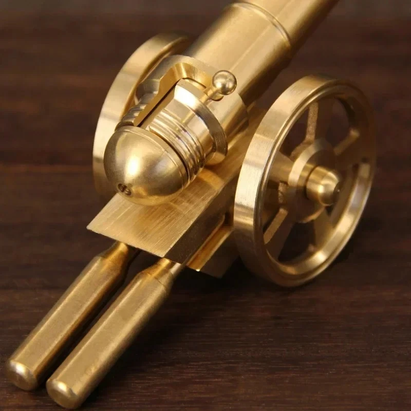 Imagine adding a striking, luxurious piece to your space—a decorative brass cannon that exudes power and sophistication. Crafted from high-quality, rust-resistant brass, this model features a polished high gloss finish that catches the light beautifully, creating a refined ambiance. Its impressive design includes large metal wheels with thick spokes and rounded rims, giving it a commanding presence. The cylindrical barrel tapers slightly towards the muzzle, complemented by two elegant tails extending from the back, emphasizing its long-range prowess. Whether placed in your living room, office, or shop, this piece offers a perfect blend of historical charm and modern aesthetics. It is an ideal gift for military enthusiasts or collectors who appreciate fine craftsmanship and commanding detail.