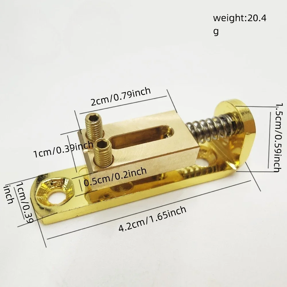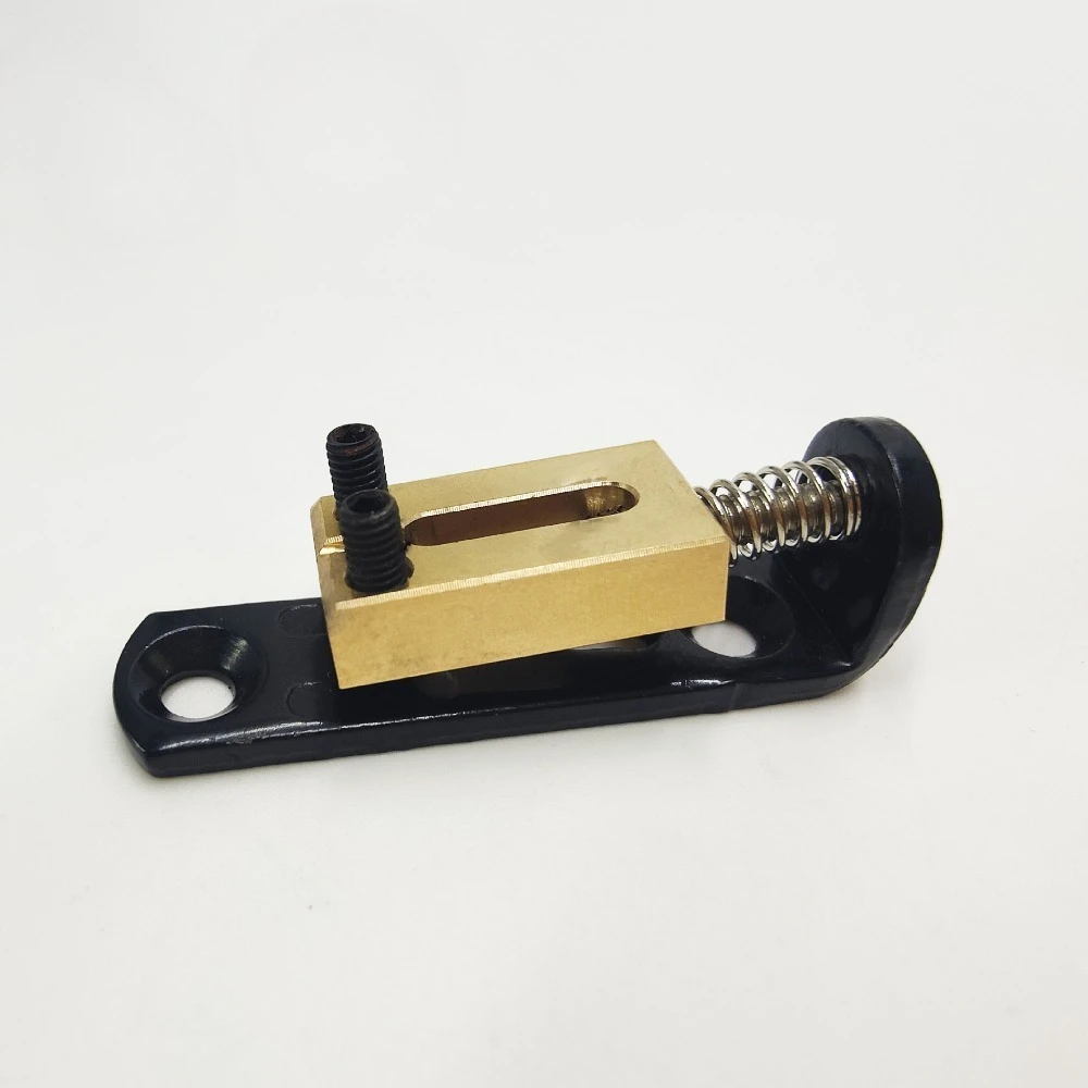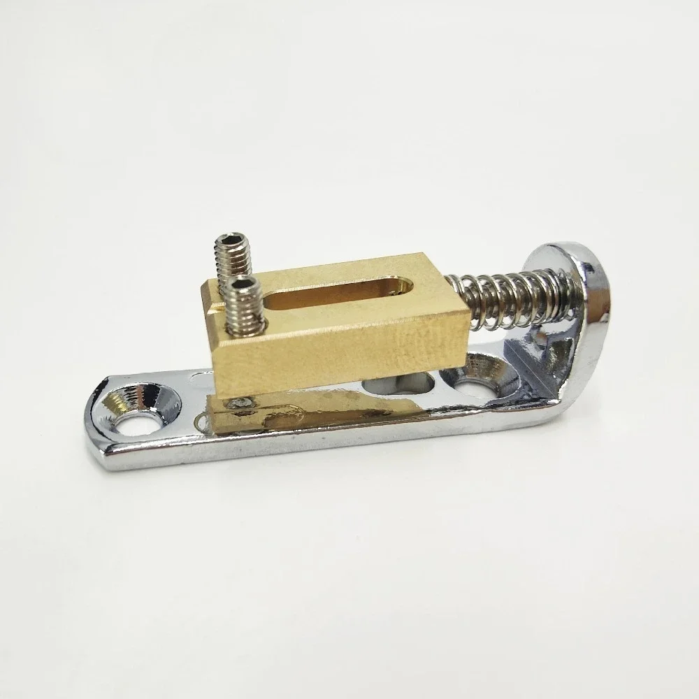 Experience precise tuning and enhanced tonal quality with this high-quality brass compensated saddle, specially designed for Precision Mode electric guitar bridges. Crafted from durable metal, it features a sleek, polished brass saddle with smooth edges, ensuring both aesthetic appeal and functional performance. The saddle is mounted on a vibrant base plate available in gold, silver, or black, offering a striking contrast that complements your guitar's style. Equipped with stainless steel springs, it provides excellent tension and stability for your guitar strings, promoting sustain and intonation. Easy to install, this saddle is perfect for guitar enthusiasts seeking reliable and stylish upgraded components for optimal sound. Its modern design makes it an excellent choice for professional repairs or modifications.