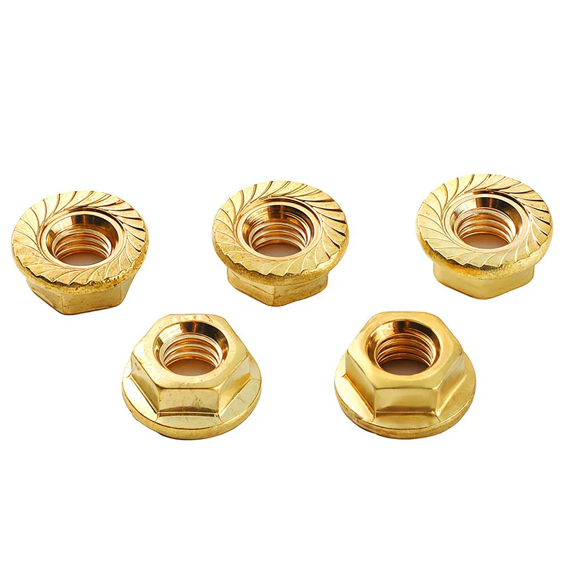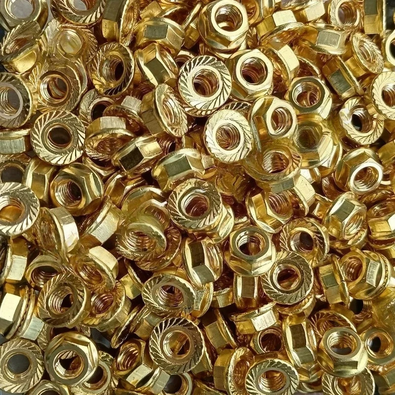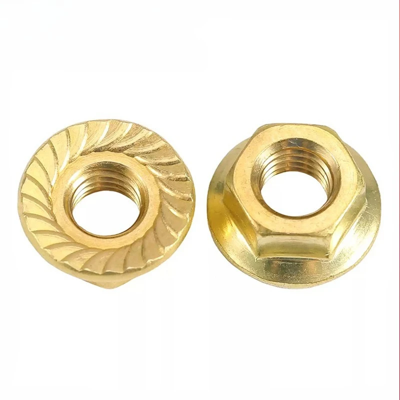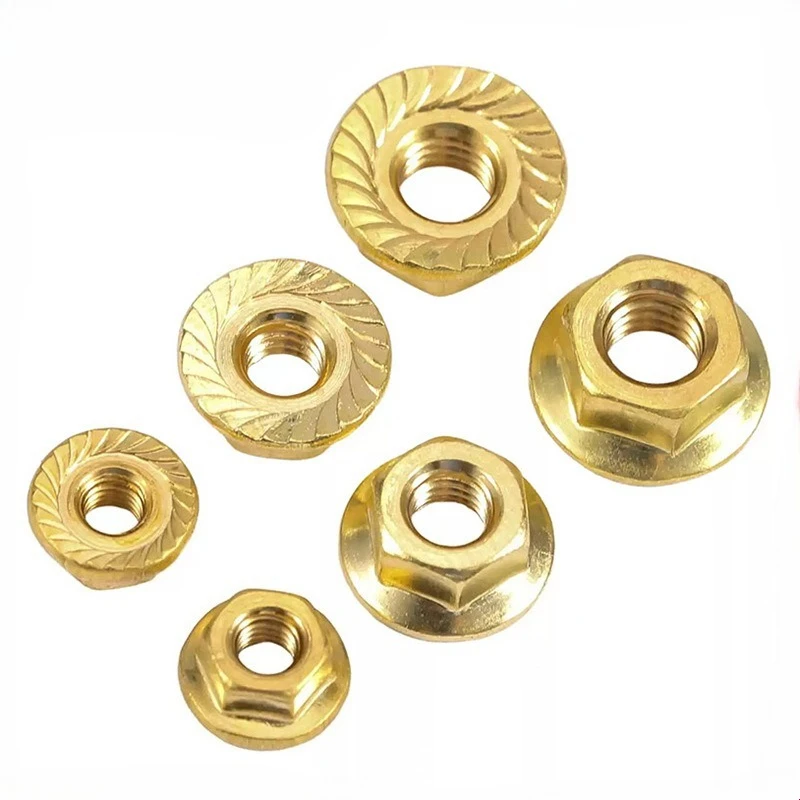 Invest in this set of brass flange nuts today and enjoy the confidence of a secure, professional finish on all your metal projects. Their textured, locking design guarantees enhanced stability, making assembly and maintenance effortless. Whether you're working on machinery, automotive parts, or custom fixtures, these nuts are perfect for ensuring lasting connections. Experience the perfect blend of form and function with high-quality brass construction. Add these versatile nuts to your toolkit and transform your metalworking results with ease and confidence—your projects deserve the best.