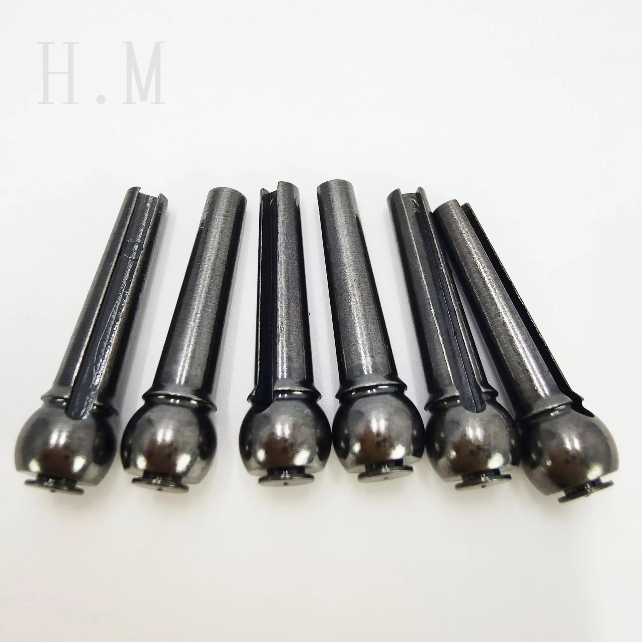 Experience the perfect blend of function and style with this set of six brass guitar bridge pins. Crafted from high-quality copper-based material, these pins are specifically designed to enhance sound transmission and provide a secure anchor for your guitar strings. Their sleek metallic finish—available in black, silver, and gold—adds a touch of sophistication to your instrument. With a length of 28mm and a maximum diameter of 5.3mm, they fit various high-end acoustic guitar models seamlessly. These high-performance pins are built for durability, ensuring consistent sound quality and a stable string hold. Whether you're recording, performing, or practicing, these bridge pins deliver excellent conduction, improving tonal clarity and resonance.