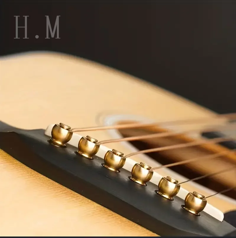 Choose these elegant brass bridge pins to elevate your guitar setup today. Their combination of aesthetic appeal and technical precision guarantees enhanced resonance and visual appeal for your instrument. Installing these pins is straightforward, and their durability ensures they will serve your guitar for many performances. Experience richer, louder sound with minimal hassle—buy now and enjoy the perfect upgrade for your high-end acoustic guitar.