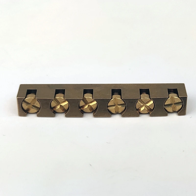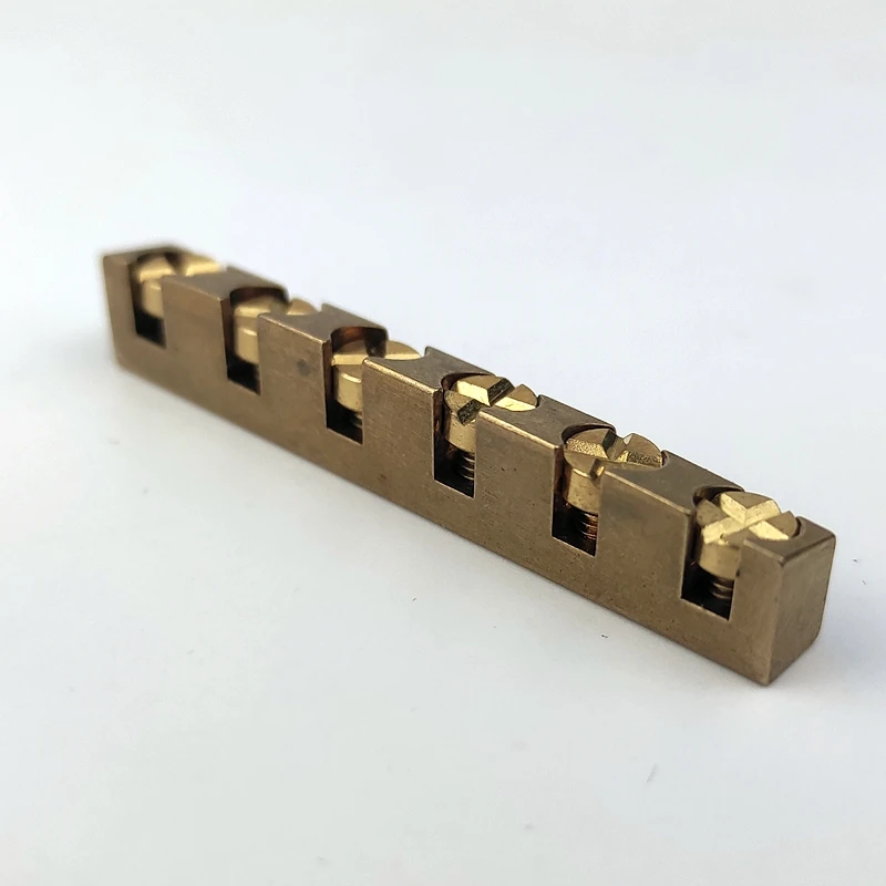 Invest in this meticulously crafted brass guitar nut and give your instrument a striking visual appeal alongside a significant tonal upgrade. Its durable construction and precise design make it ideal for players seeking both longevity and enhanced sound quality. Whether replacing a worn-out part or customizing your guitar's look and tone, this nut is the perfect choice for serious musicians. Easy to install and compatible with many styles, it’s a versatile upgrade that quickly transforms your playing experience. Elevate your guitar today with this premium component designed for reliability and performance.