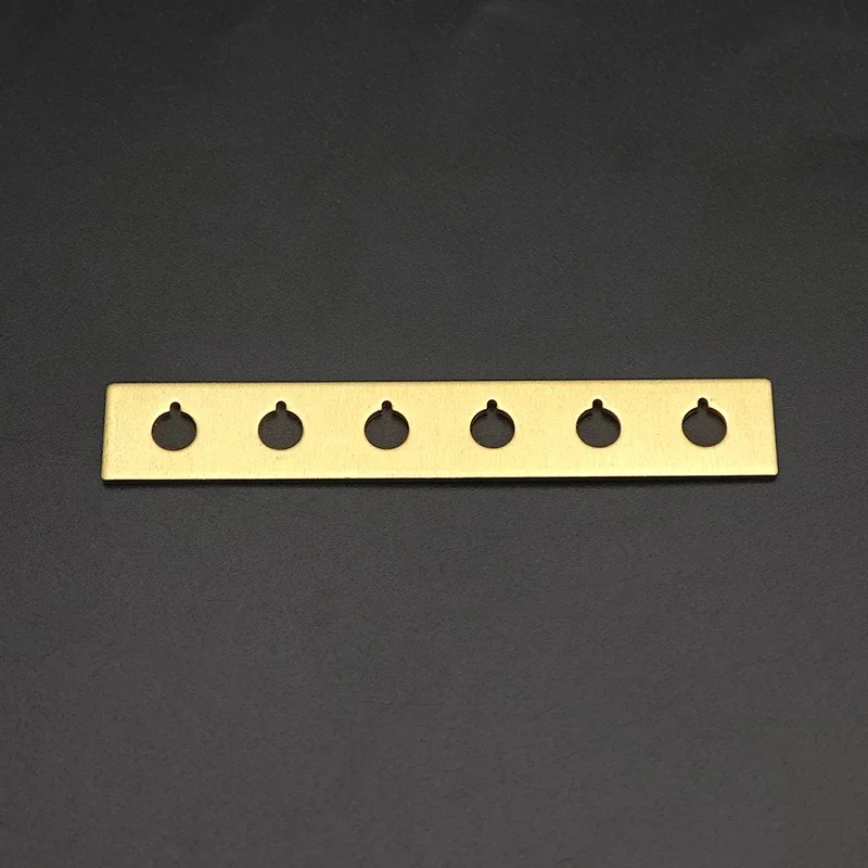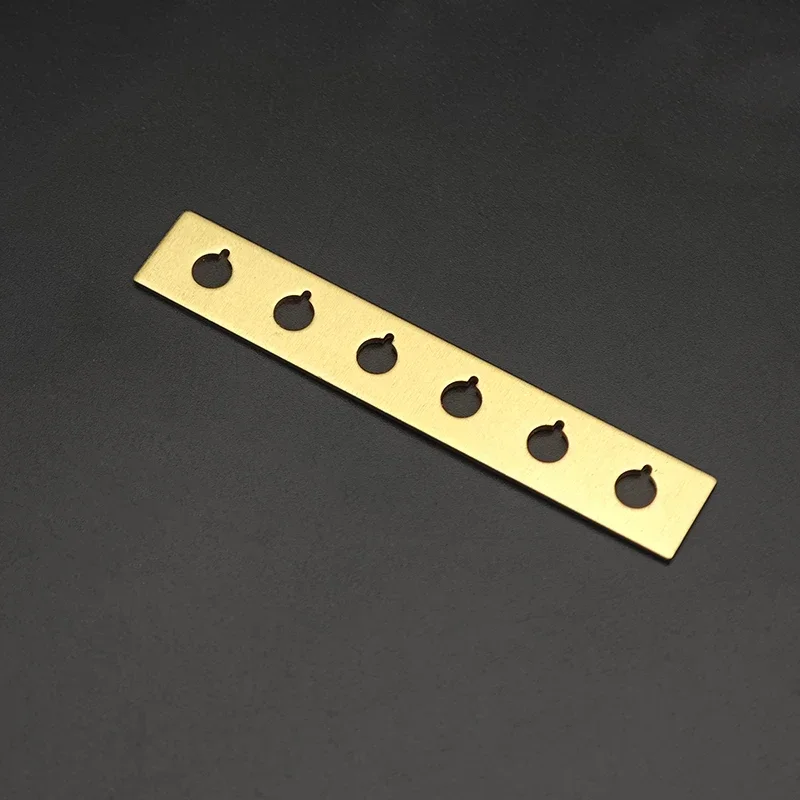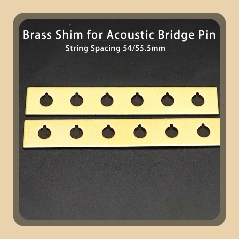 Imagine restoring your guitar’s sound quality and stability with ease using this set of ten high-quality brass shims. Crafted from durable brass, these shims are designed specifically for repairing oversized bridge pin holes on acoustic guitars. Their sleek, elongated rectangular shape with a polished shine enhances precise fitting and long-term performance. The five evenly spaced, 4.5mm diameter holes allow for secure attachment while maintaining optimal string spacing—choices include 10.8mm or 11.1mm. Lightweight and portable, these shims provide a cost-effective solution for guitar enthusiasts and luthiers alike. Whether you're a professional or a passionate amateur, using this set ensures your guitar remains in prime condition, producing rich sound and excellent tone. Easily add these to your repair toolkit or carry them for on-the-go fixes, confident of their quality and craftsmanship.