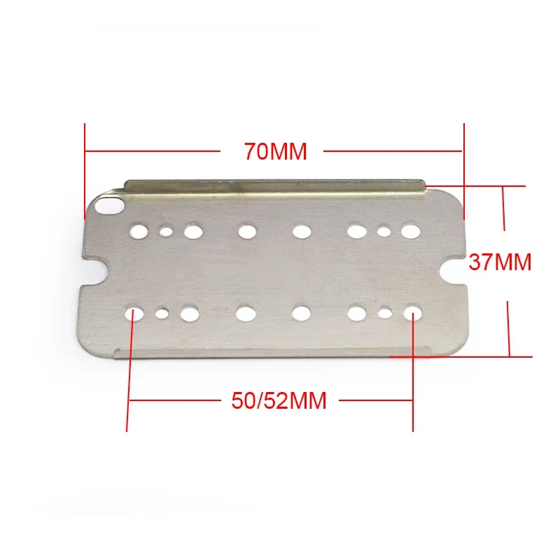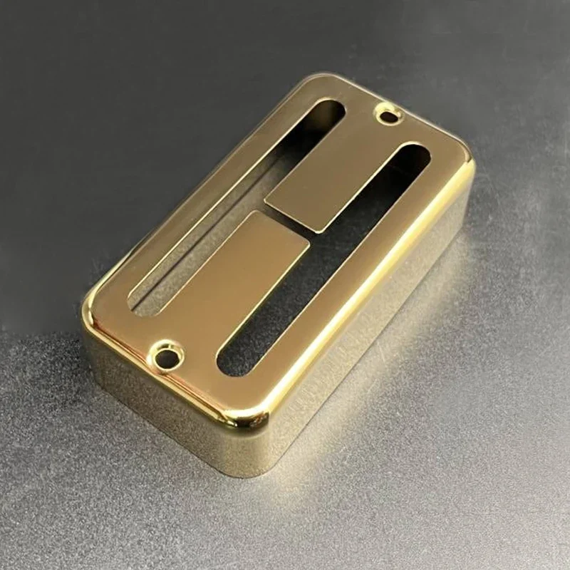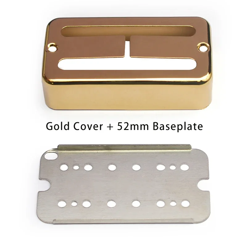 Transform your electric guitar with this stunning set of four brass H-type pickup covers. Each cover is available in either a glamorous shiny chrome finish or a rich gold hue. Designed specifically for humbuckers, they perfectly blend aesthetic appeal with functionality. The polished brass not only adds elegance but is also crafted for durability. Each pickup cover measures approximately 71mm in length and 38mm in width, featuring two elongated slots for effortless installation. Accompanying the covers is a robust copper baseplate, specifically made for 6-string guitars, with pole spacing options of 50mm and 52mm. Elevate your guitar's performance with this perfect blend of style and practical design.