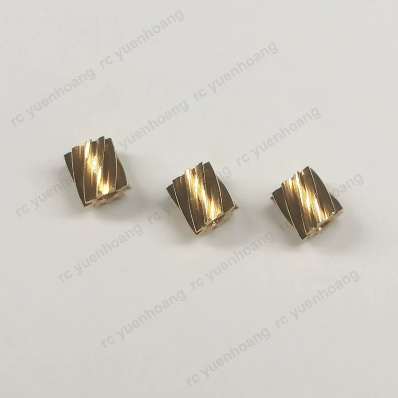 Enhance your DIY RC car projects with this premium set of brass helical gears. Crafted with precision, these gears feature a shiny metal finish and sharp, broad teeth for smooth engagement and durability. Designed with a 26-degree helix angle, they deliver efficient power transmission in compact spaces. Each gear measures 4.8mm in outer diameter and 5mm in height, with a tightly fitting 2mm shaft hole to ensure secure installation on motor shafts. Ideal for custom vehicle builds or upgrades, these gears combine technical excellence with aesthetic appeal, making your assembly process more straightforward and reliable. Experience seamless operation and enjoy the satisfaction of assembling high-quality, precise components for your RC vehicles.