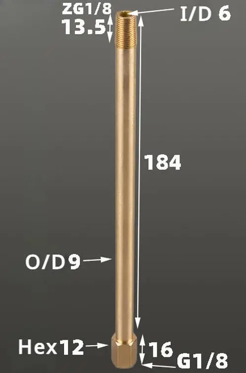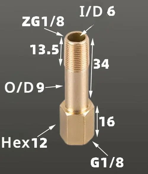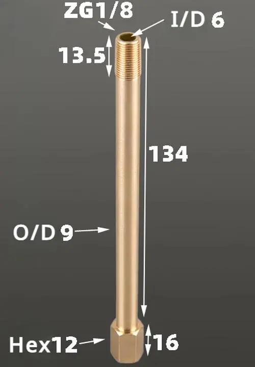 - This professional brass pipe fitting features BSP thread sizes of 1/8″, 1/4″, and 3/8″, adaptable for various plumbing and cooling system needs with lengths from 35mm to 300mm.