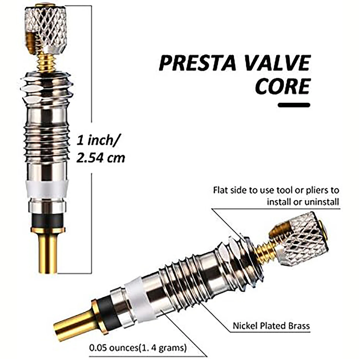- This set includes either 10 or 20 brass Presta valve cores with a polished, shiny surface for durability and corrosion resistance. Designed for expert and everyday bike maintenance needs.