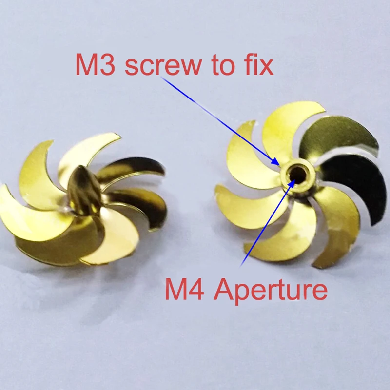Imagine upgrading your RC boat project with these stunning brass propellers, perfectly crafted for precision performance. With a bright, polished finish, they add a touch of classic elegance while ensuring durability and efficiency. The set includes two blades—one spinning clockwise and the other counterclockwise—allowing smooth, reliable propulsion. Ideal for customization or repair, these props feature a 36mm diameter and 7mm height, offering optimal size for micro boat modifications. Their M4 apertures accommodate M3 set screws (not included), and they connect securely via soldering. Designed with artistic yet aerodynamic blades, they marry form and function, making your RC boat stand out on the water with improved speed and maneuverability.