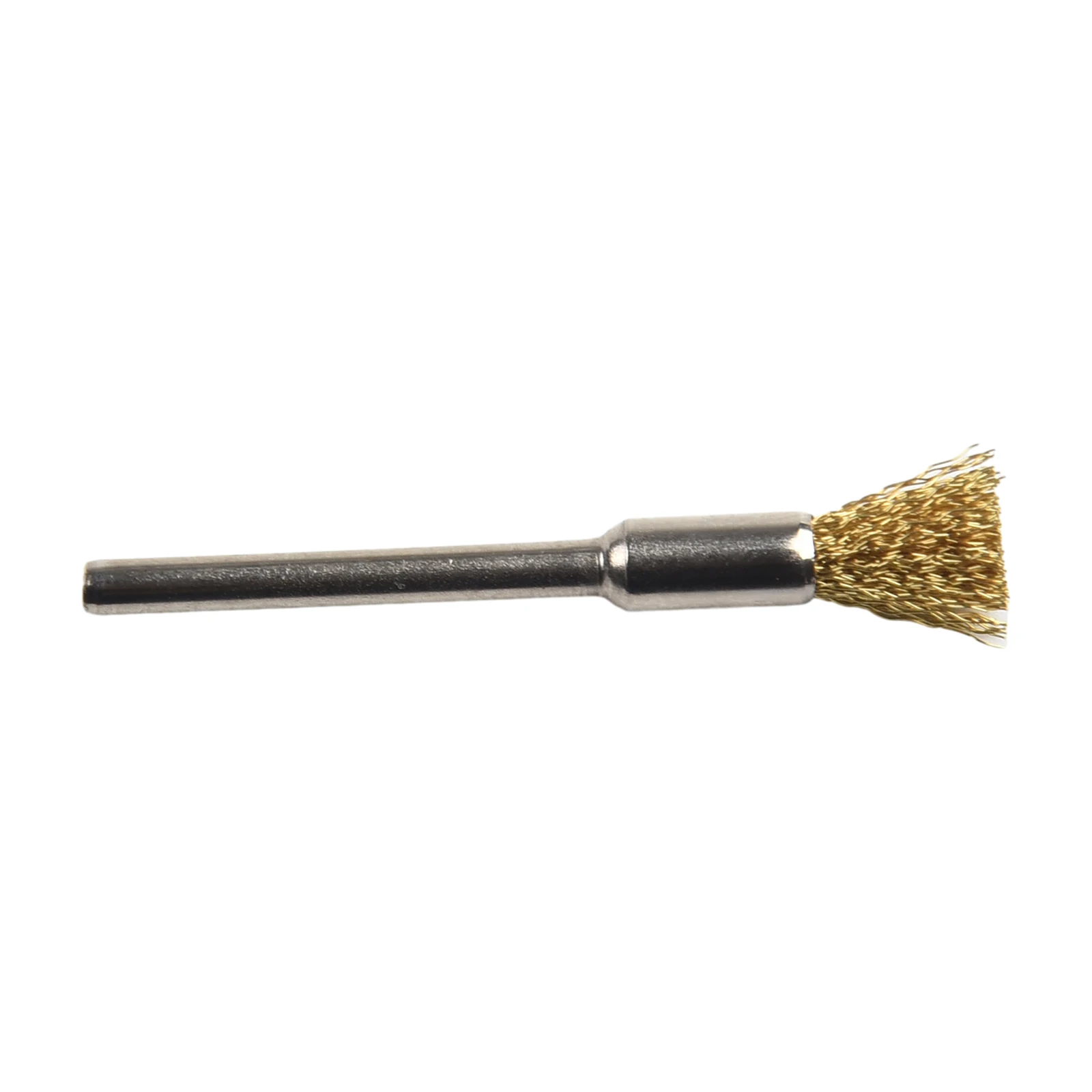 Upgrade your metal polishing toolkit with these 30 brass rotary wire wheel brushes, each measuring approximately 5mm (0.20″) in diameter and mounted on 3.17mm (1/8 inch) mandrels. Crafted from durable copper wire, these brushes feature a sleek handle length of about 40mm (1.57″), ideal for removing rust, corrosion, and tarnish from precious and other metals. Perfect for use with power drills, they are essential for jewelers, locksmiths, technicians, and enthusiasts seeking precise surface cleaning and finishing. The densely packed copper wires radiate outward, providing a textured, brushed effect for detailed metalwork, all designed to deliver professional results with durability and efficiency.