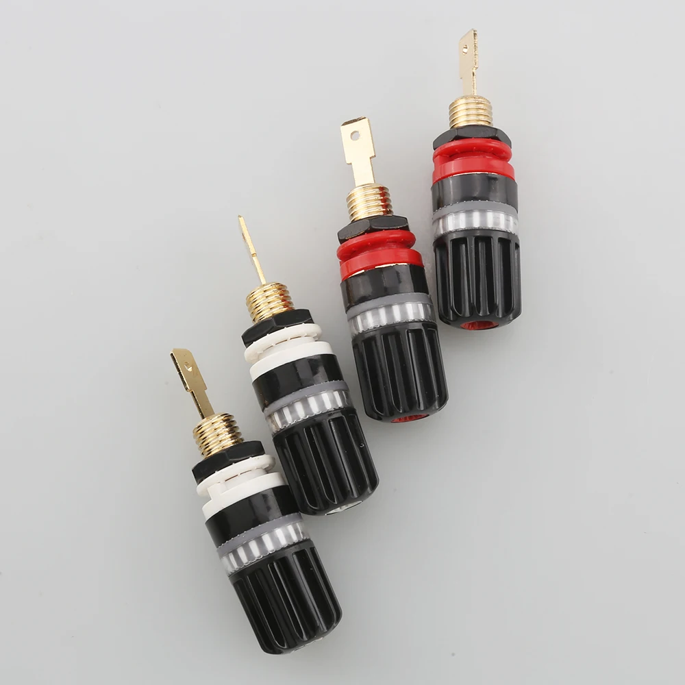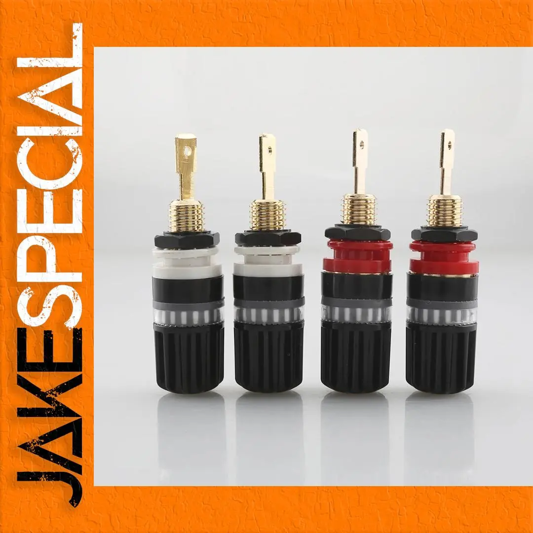 Experience premium audio connectivity with this set of four high-end brass speaker binding posts, designed for optimal performance and durability. Each post measures 61.5 mm in length with a maximum outer diameter of 17 mm, featuring an 8 mm screw shaft diameter and a 5 mm wire hole for secure wiring. The posts are compatible with 11 mm diameter mounting holes and include male banana plug connectors with a 16 mm screw shaft length. Crafted with a sleek, polished gold finish, these binding posts combine refined aesthetics with sturdy construction, perfect for enhancing high-fidelity speaker systems. Their sophisticated design ensures reliable connections, elevating your audio setup to a new level of quality.