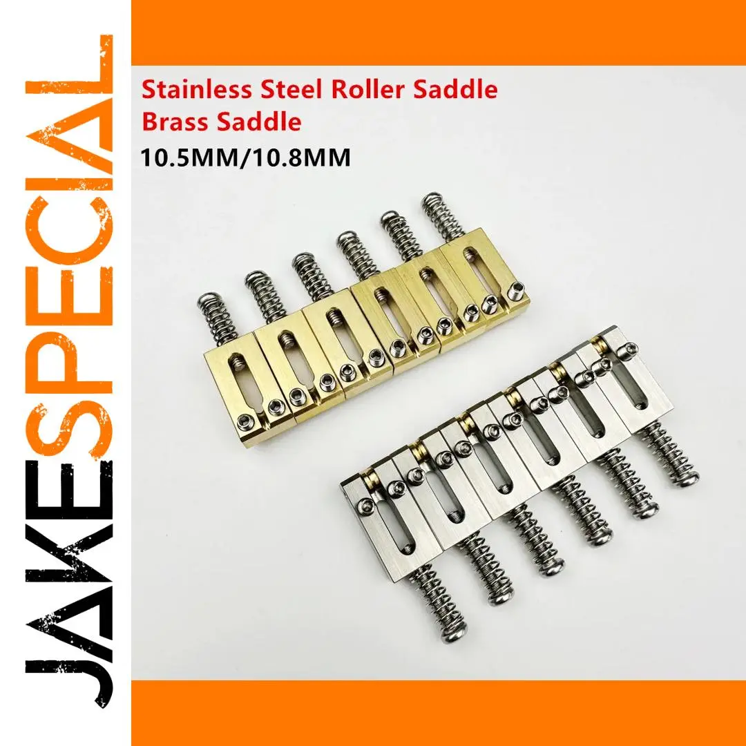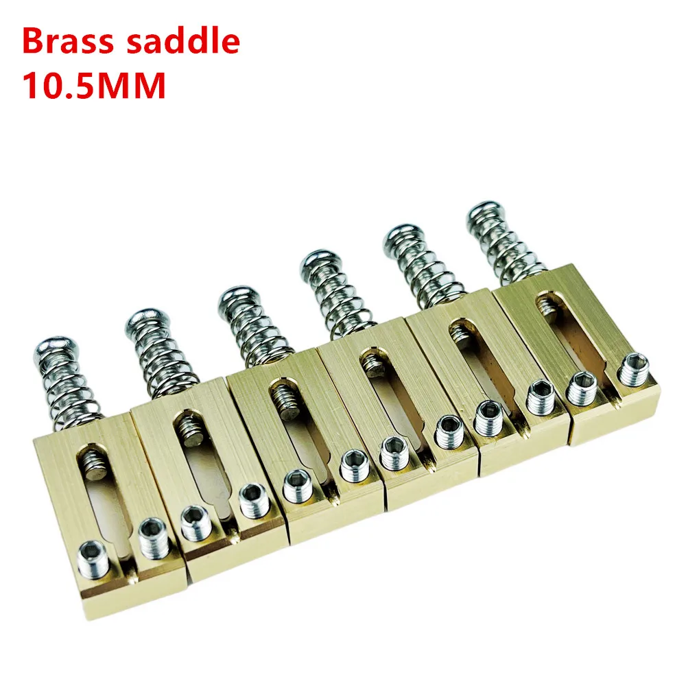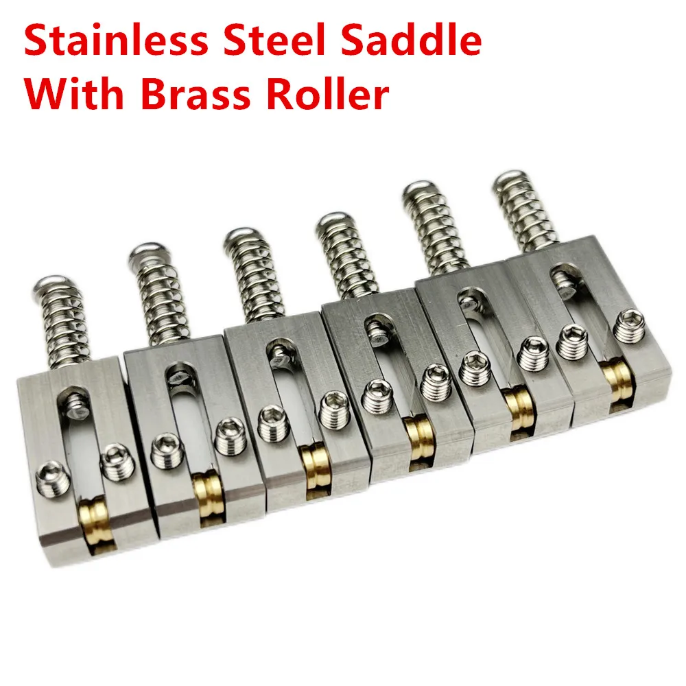 Elevate your guitar playing experience with this meticulously crafted set of bridge saddles, designed for Strat ST and Tele TL electric guitars. Featuring a stunning arrangement of brass and stainless steel saddles, this set combines aesthetic appeal with durability. The brass saddles radiate a warm, gold-like glow, while the stainless steel options provide a modern, sleek look. Equipped with precision adjustment screws and springs for optimal performance, you can achieve the perfect action and intonation on your instrument. Embrace the joy of playing with saddles that not only function impeccably but also enhance the visual allure of your beloved guitar.