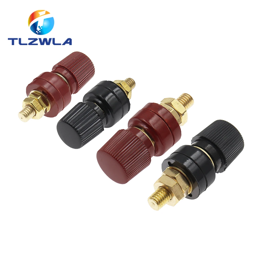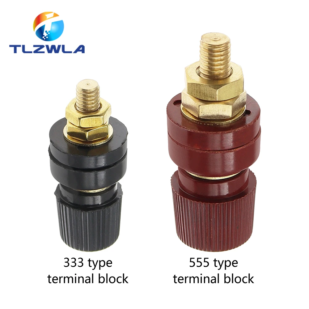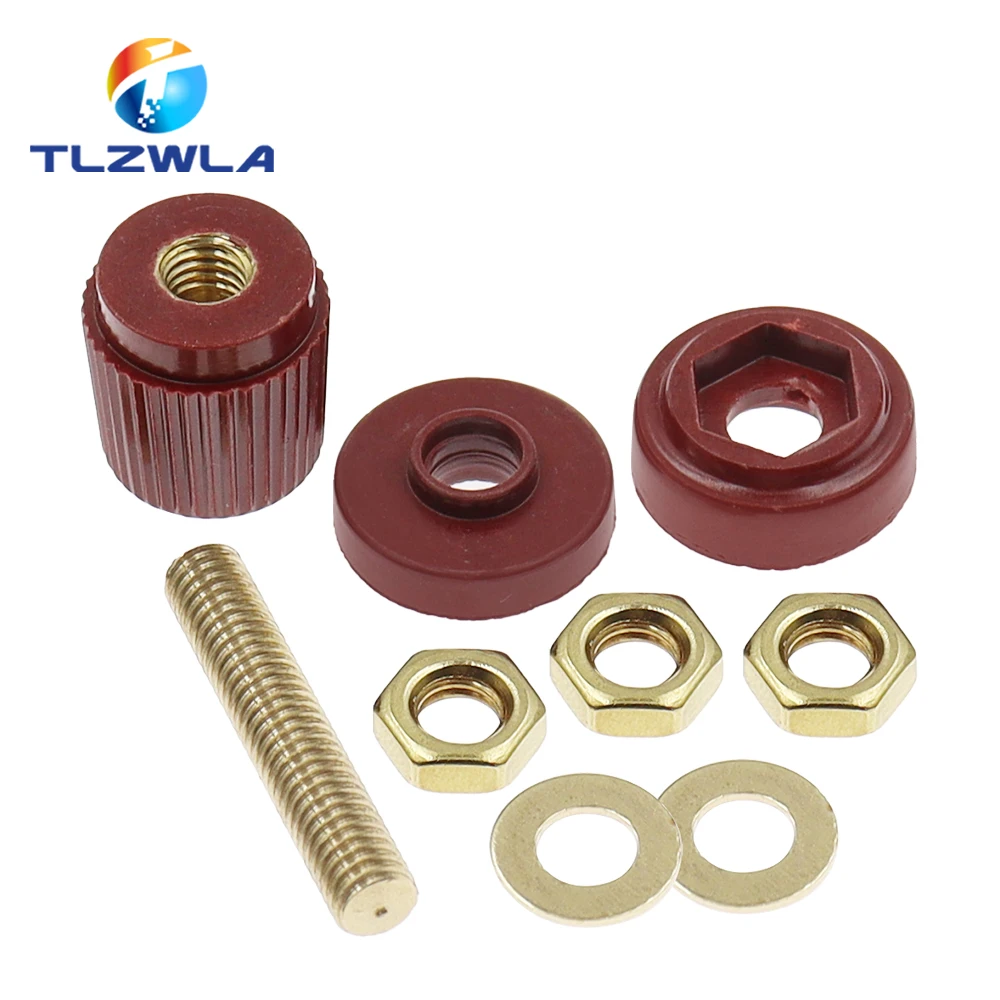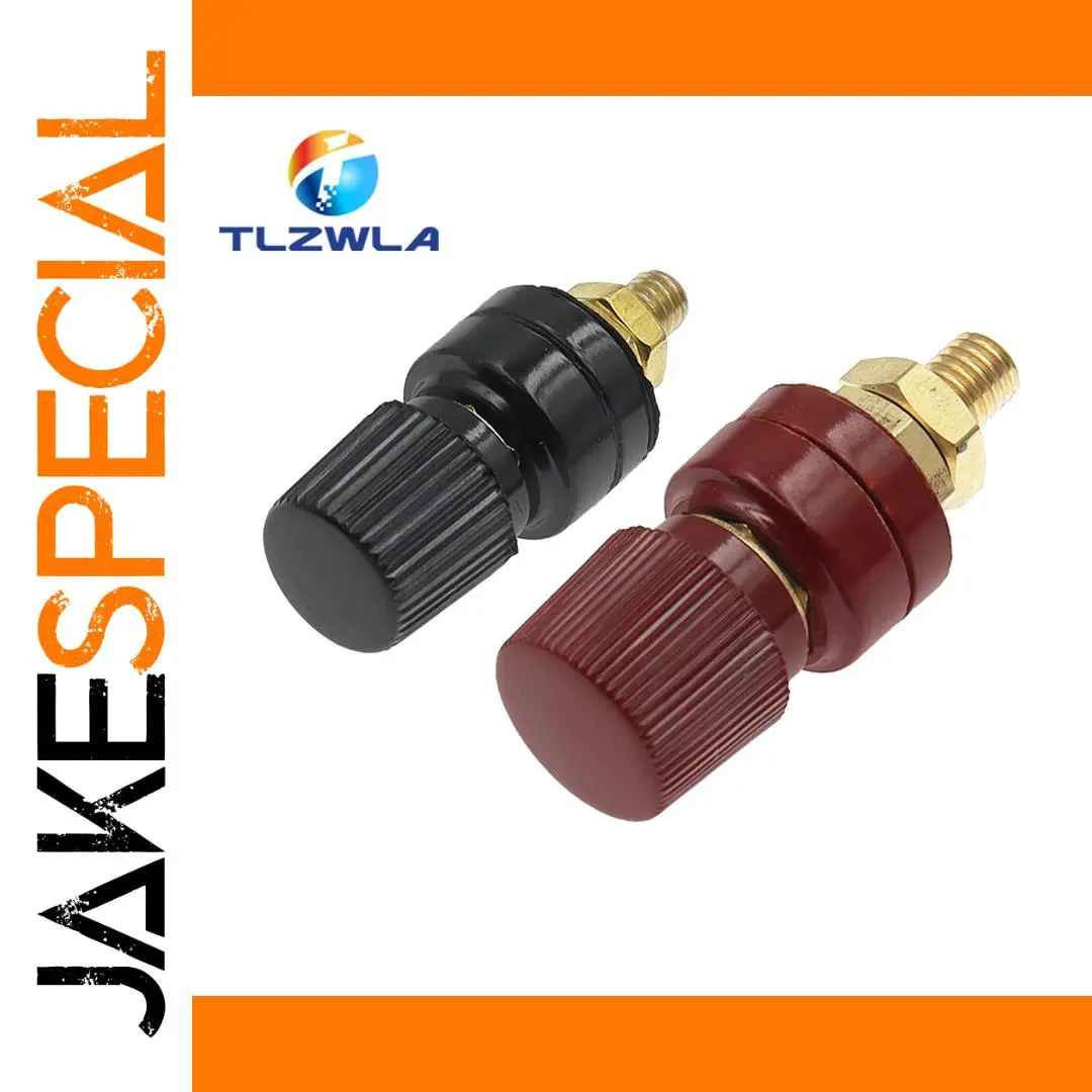 Imagine confidently installing your vehicle's electrical system with this set of two brass stud terminal connectors, designed for reliable power connections. Perfect for automotive enthusiasts, these connectors come in sizes of 6mm and 8mm, available in black, red, and various color combinations to suit your needs. Crafted from durable brass and plated for corrosion resistance, they support up to 24V and 100A current, ensuring safety and performance in high-demand scenarios. The textured, ribbed body provides a secure grip during installation and removal, while the threaded studs with hexagonal shapes allow for tight, secure connections. This set guarantees a sturdy, long-lasting connection for your car’s electrical system, combining practicality and professional quality.