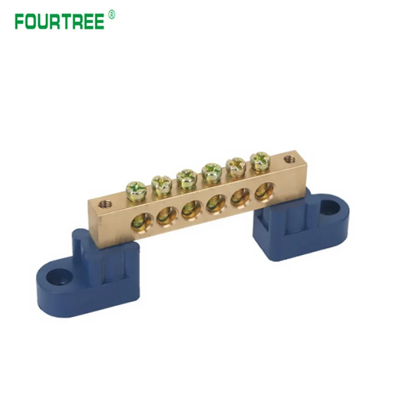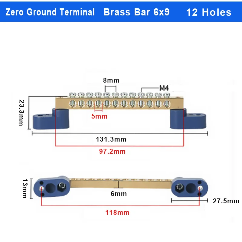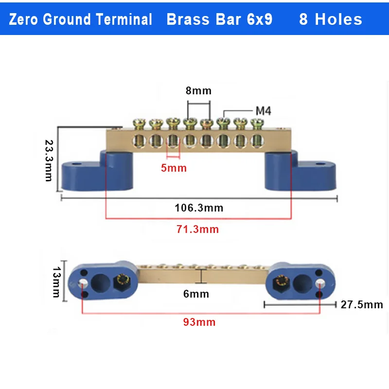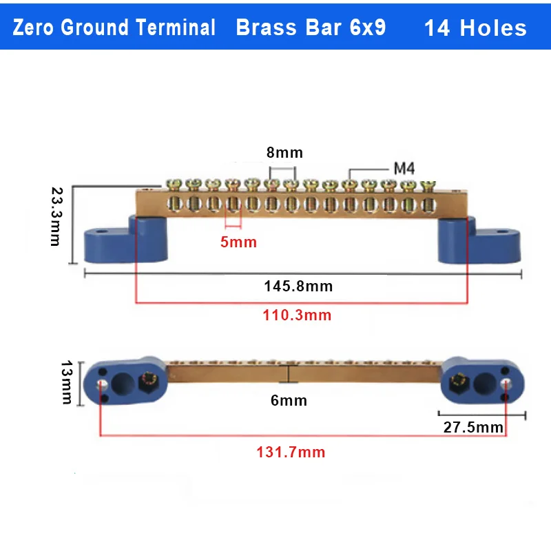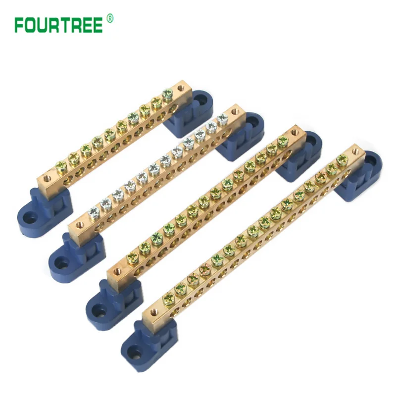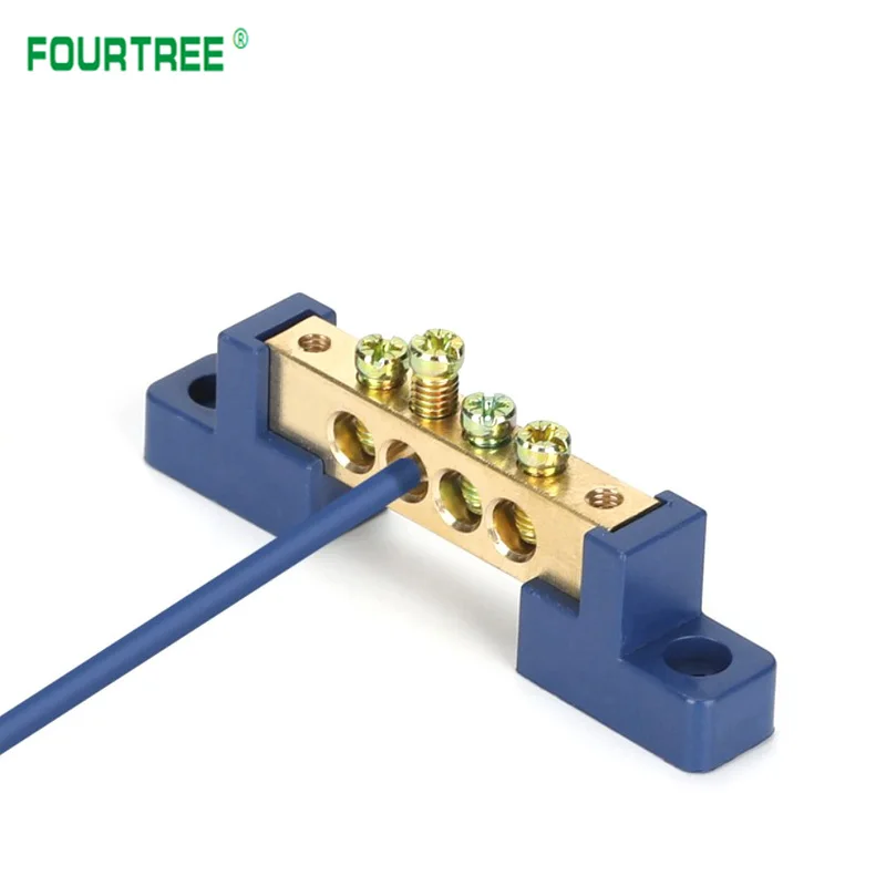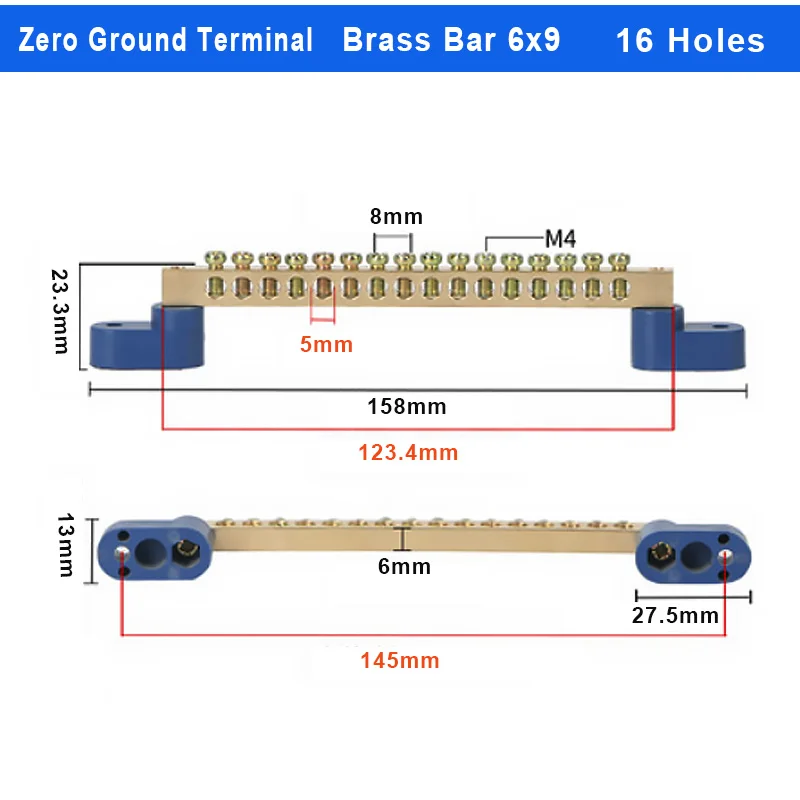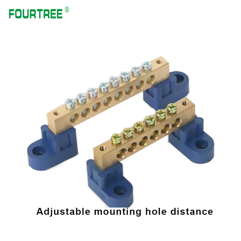 The Brass Wiring Terminal Row is designed for efficient electrical connections, available in models with 4, 6, 8, 10, 12, 14, or 16 holes. Constructed from durable brass and plastic with a pickled surface finish, it features screw fixation compatible with M4/M5 screw types for secure mounting. The angular blue plastic bases enhance stability and offer adjustable mounting holes for versatile installation options. Ideal for both industrial and contemporary projects, this terminal block combines functionality and sleek design, making it a perfect addition to your electrical setup. Enjoy the peace of mind that comes with reliable connectivity and easy installation.