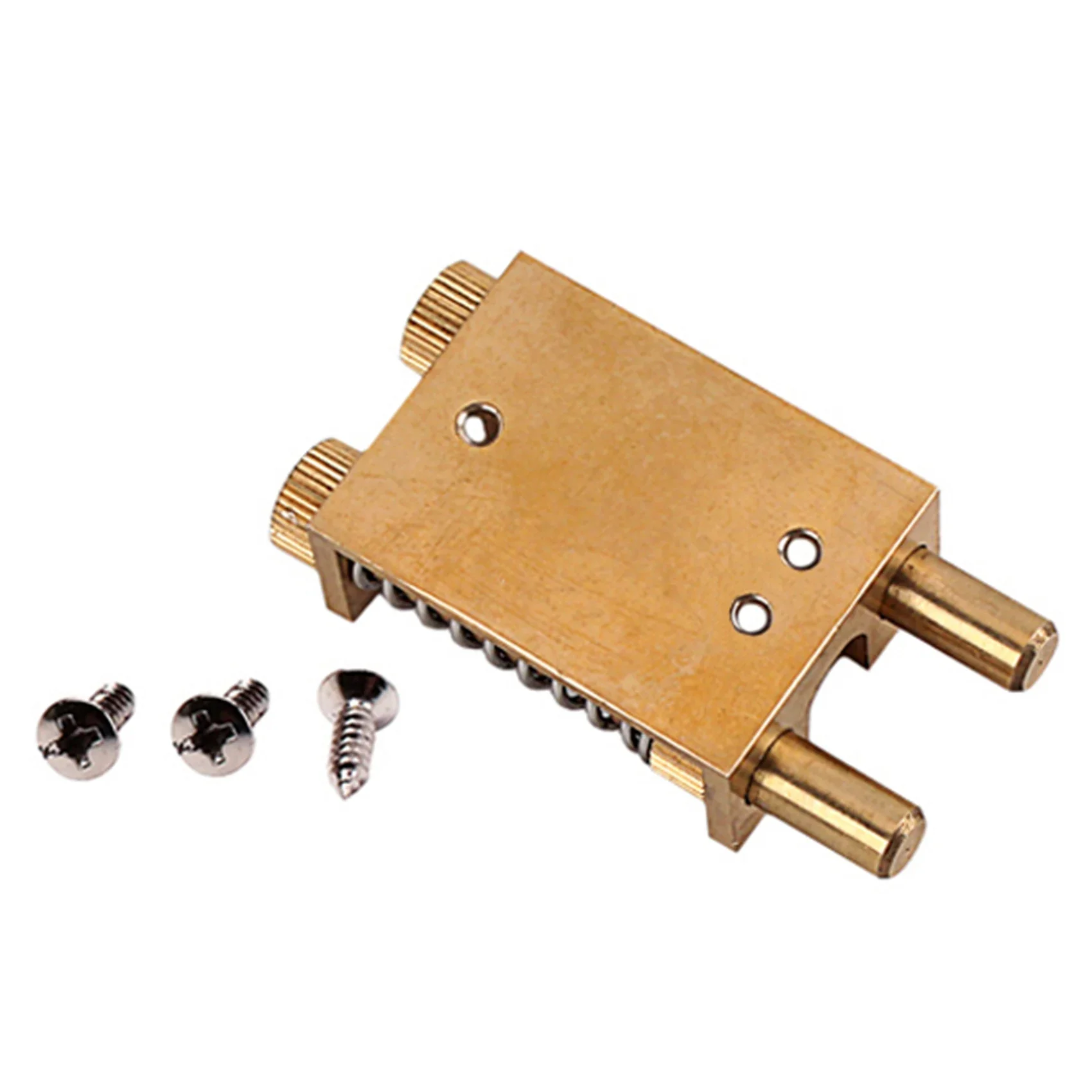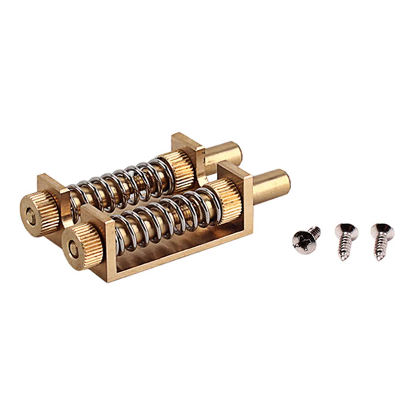 Enhance your electric guitar’s performance with this polished brass tremolo bridge system featuring a 56mm x 29.5mm x 15mm design. Equipped with a double copper rod spring stabilizer, it ensures precise return to zero position, eliminating flutter and sag for stable, expressive play. Crafted from durable brass with a shiny, gold-like finish, it includes three screws for secure installation and is compatible with various electric guitar models. Perfect for customizing your instrument, this robust and sleek tremolo system allows for seamless bending, harmonics, and mute techniques, providing reliable stability and a professional aesthetic for your guitar setup.