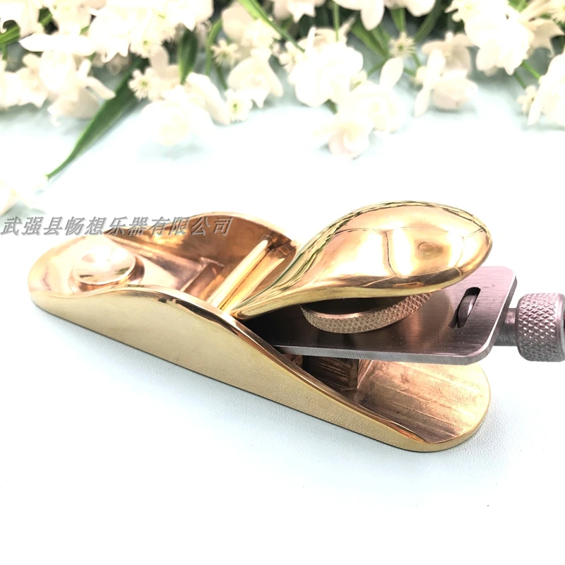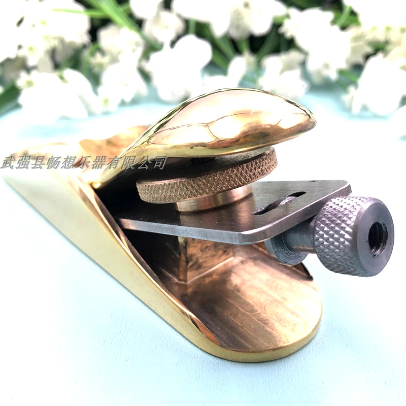 Experience precise woodworking with this handcrafted professional brass plane, featuring a high-quality polished brass body, a durable wear-resistant brass sole, and a lightweight, ergonomic design for comfortable handling. Equipped with a high-speed steel blade that is easily sharpened and highly durable, it is ideal for small projects and hard-to-reach areas such as violin, cello, and guitar production. Its elegant, classic aesthetic combines craftsmanship and functionality, making it not only a practical tool but also a collector’s piece that reflects quality and artistry. Perfect for enthusiasts seeking both precision and beauty in their woodworking and musical instrument finishing.