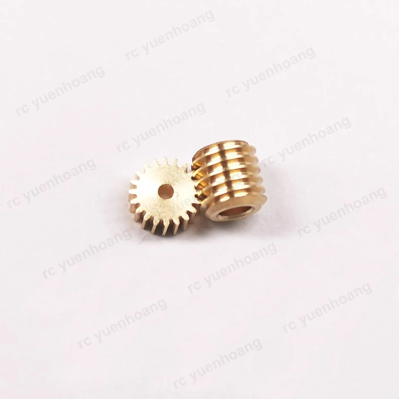 - Specific technical specs include: gear teeth: 20T or 30T, worm hole diameters: 0.8mm, 1mm, 2mm, gear hole diameters: 1mm, 2mm, 3mm, material: brass, modulus: 0.2, suitable for RC models and DIY transmission projects.