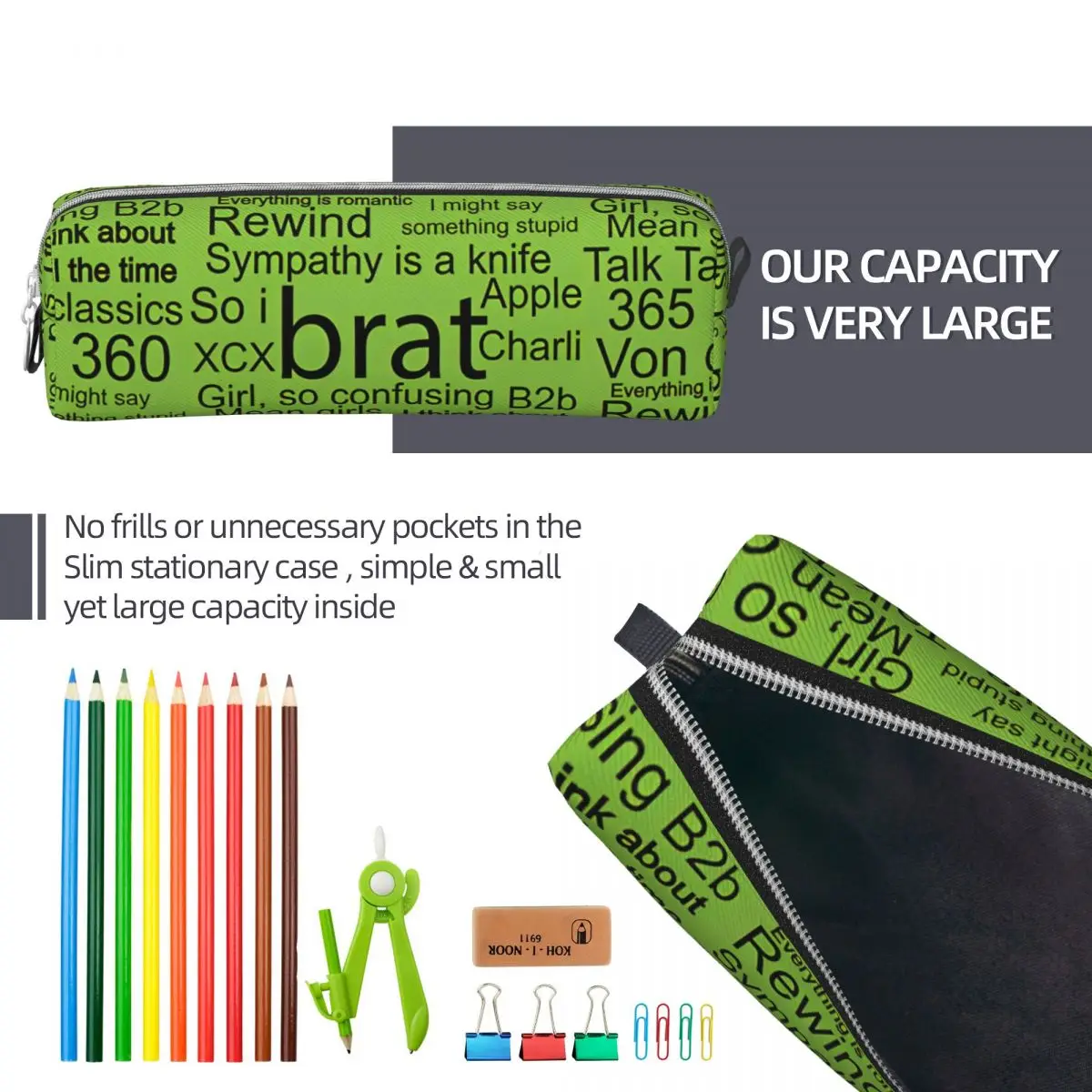 Key features of the Brat Charli XCX Pencil Case