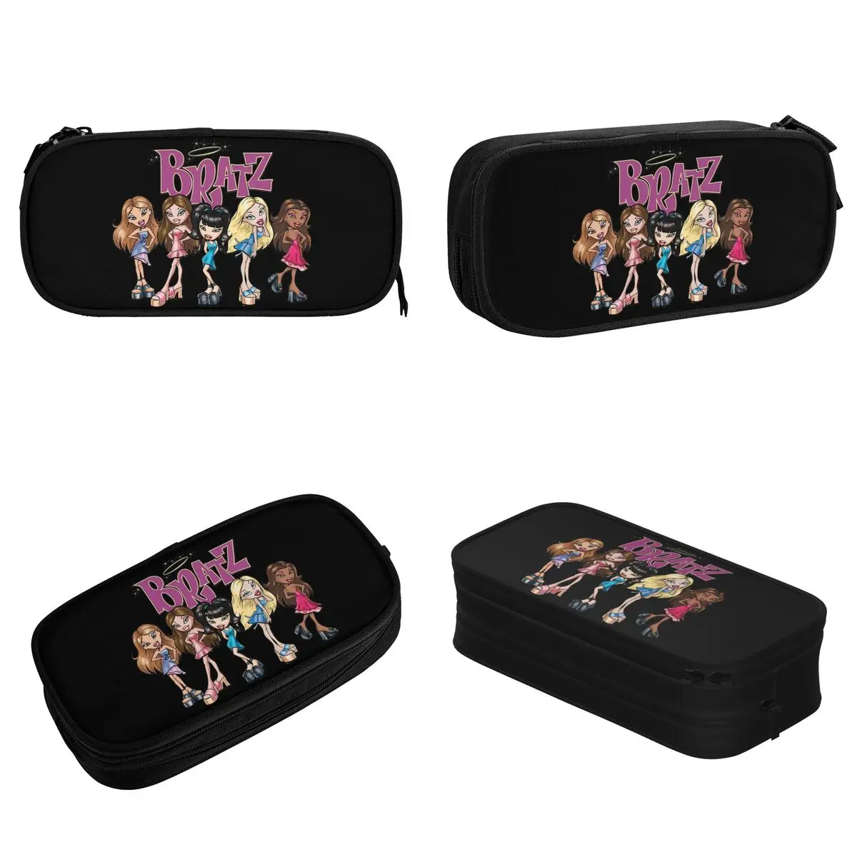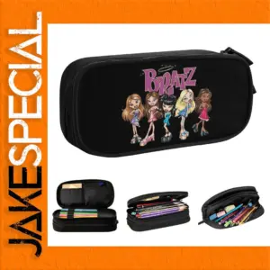 The Bratz Y2K Logo Harajuku Anime Pencil Case is your ultimate accessory for school or office use, combining vibrant style with functionality. Its sleek black exterior features playful “Bratz” lettering in striking pink and purple, alongside four trendy cartoon characters adorned in Y2K fashion. You’ll love the spacious interior compartments which are perfect for organizing school supplies, cosmetics, or stationery items. The durable fabric and secure zip closure ensure your essentials stay safe and in place. Get ready to stand out among your peers while keeping your items neatly arranged in this eye-catching pencil case!