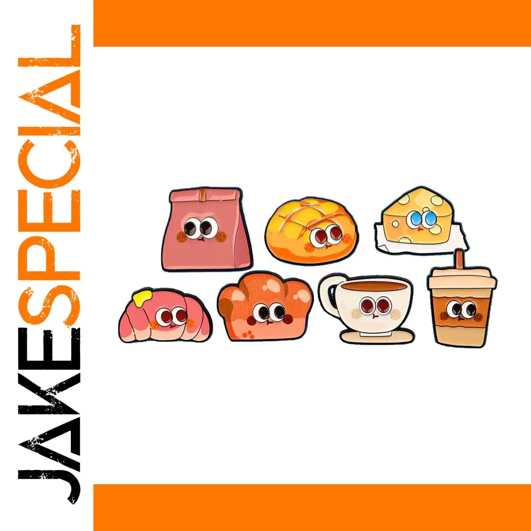 Imagine adding a playful touch to your style with this vibrant, cartoon-inspired pin set. Crafted from alloy, each pin features bold black outlines and bright colors like pink, orange, yellow, brown, and blue, creating a cheerful, whimsical look. The pins depict various baked goods, beverages, and cheese with expressive eyes, adorable details, and smooth, rounded shapes. Perfect for personalizing jackets, backpacks, or hats, they bring personality and charm to any outfit. Whether you're a collector or seeking a unique accessory, these pins evoke fun and personality. Their lightweight design and colorful aesthetic make them a delightful addition to your accessories collection, making everyday look effortlessly adorable and inviting admiration wherever you go.