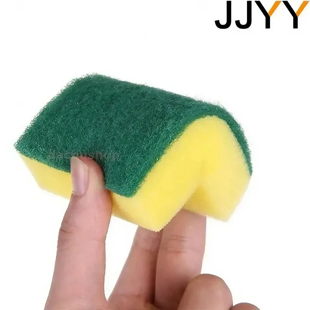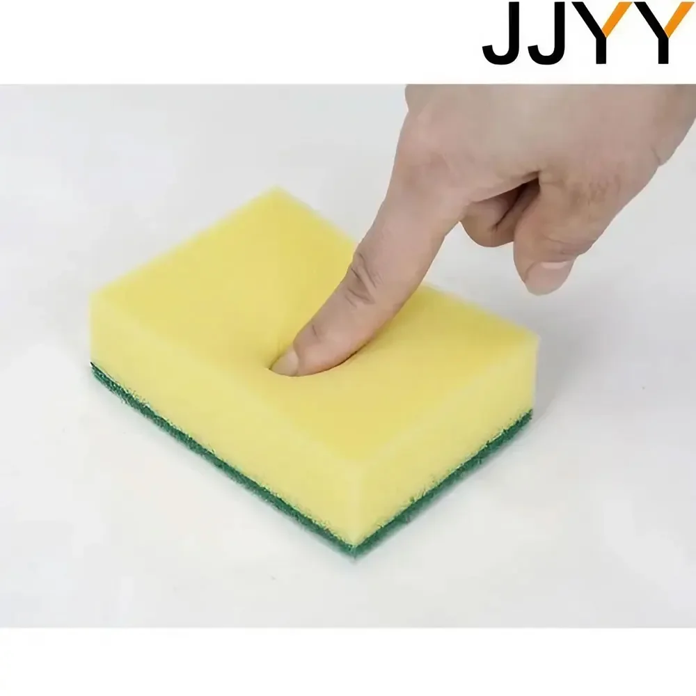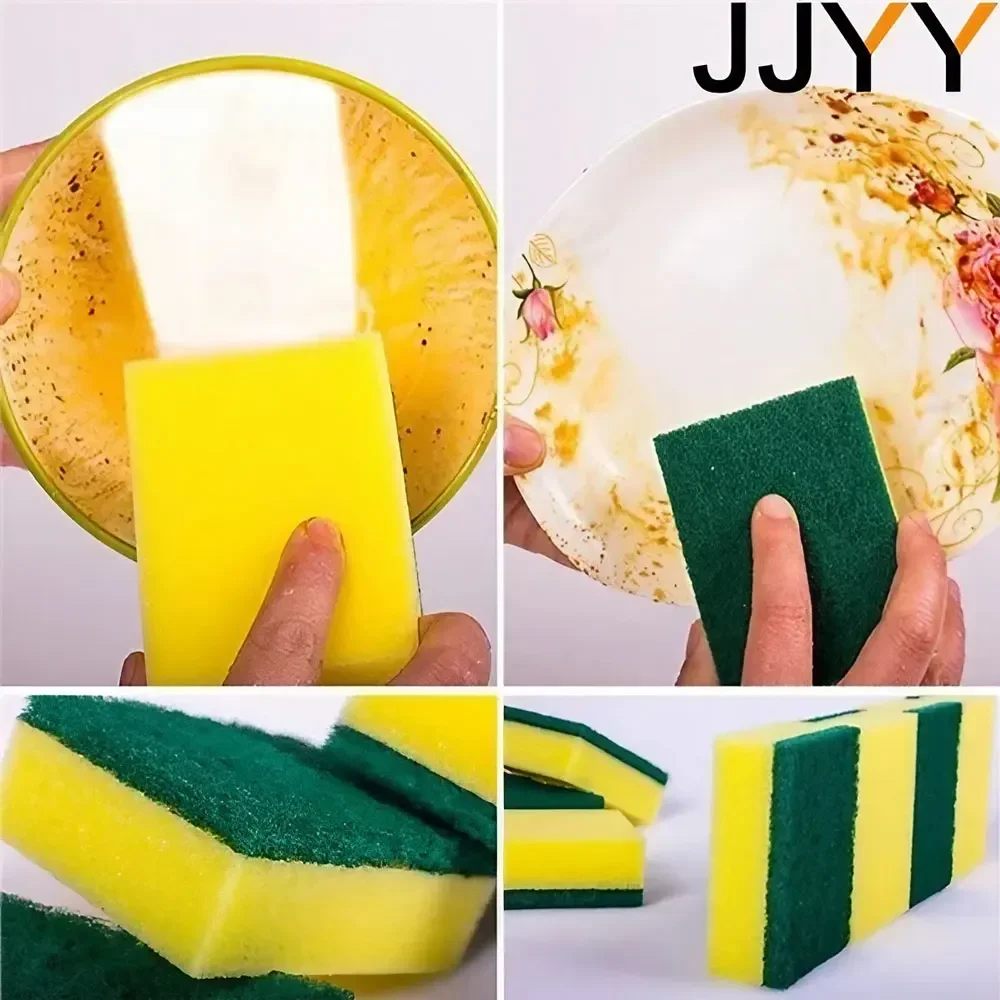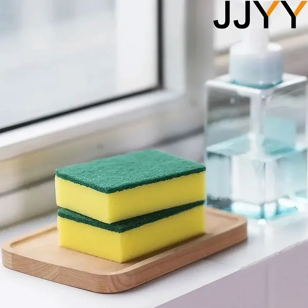 Imagine effortlessly tackling stubborn stains and grime with this vibrant set of ten cleaning sponges. Each sponge measures approximately 9 cm in length, 6 cm in width, and 3 cm in height, designed to fit comfortably in your hand. Crafted from lightweight high-density sponge material, these sponges feature a textured green abrasive surface ideal for scrubbing away dirt, oil, and residue. Their bright yellow core adds a cheerful touch to your cleaning routine. The durable, water-absorbent sponges are suitable for various household tasks including dishwashing, surface cleaning, and stubborn stain removal. With advanced water rinse technology, they stay odor-free and hygienic with each cleaning. Durable yet gentle, they protect surfaces while delivering excellent cleaning performance.