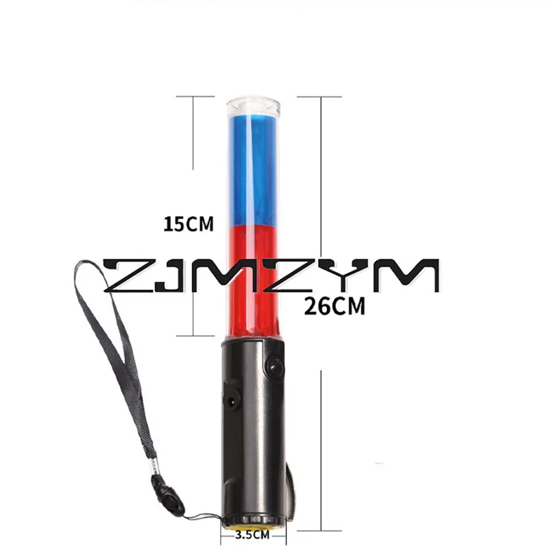 Enhance your traffic safety and emergency response with this 26cm LED traffic safety signal wand featuring vivid blue and red color segments for maximum visibility. Made from durable AS+ABS plastic with a 3.5cm diameter and a sleek, ergonomic black handle, it offers versatile flashing modes—including blue bright, red bright, and alternating red and blue—which can operate for 8 to 15 hours and are visible from up to 200 meters. Perfect for traffic management, inspections, evacuations, and firefighting, it includes a wristband for secure handling. Its sturdy construction ensures reliable outdoor performance in critical situations.