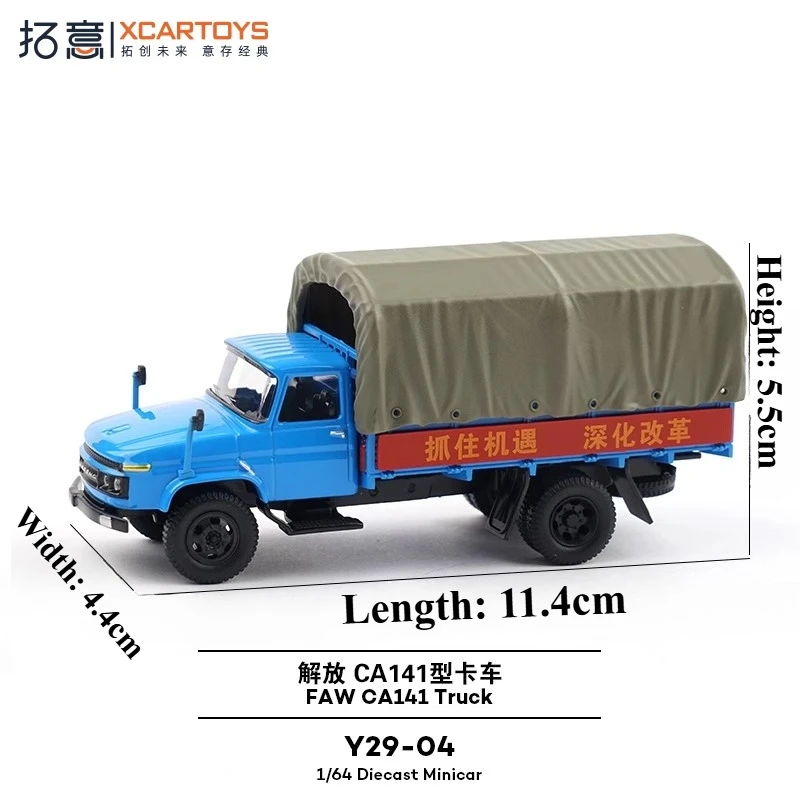 - Highly detailed diecast model showcasing a bright blue (Y29-04) finish, with precise color matching for an authentic display piece that captures the look of the real FAW CA141 truck.