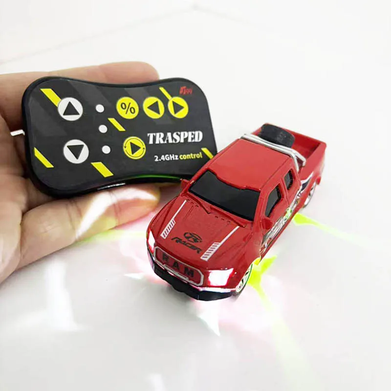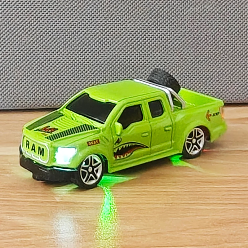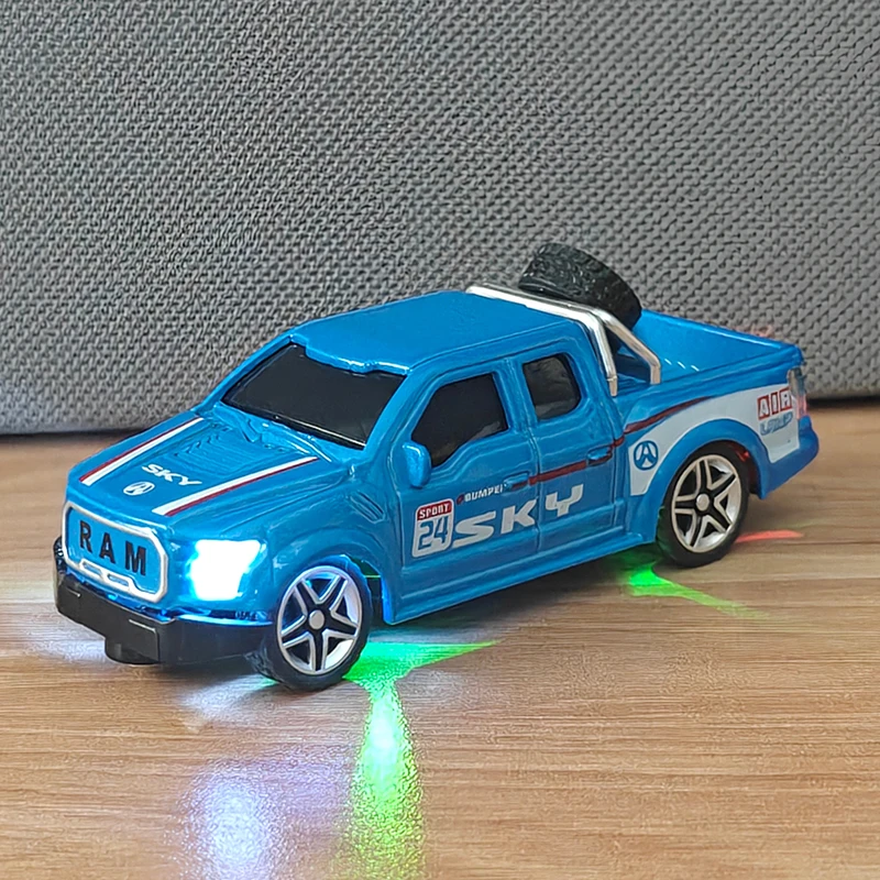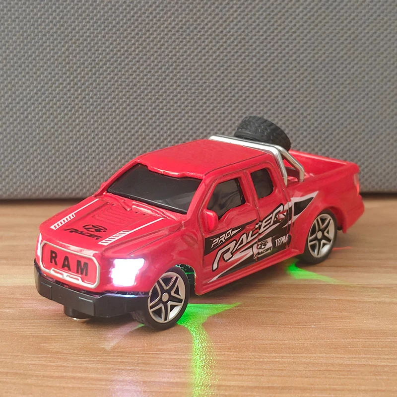 Experience the thrill of driving with this 1:43 scale miniature RC alloy pickup truck, measuring 7.8 x 3.3 x 3.3 cm. Crafted from durable metal, it features a vibrant color options—bright green, blue, or red—with realistic design details including black roof and hood, metallic finish, black grille with silver accents, and lighting effects on headlights and bumper. Powered by a 3.7V lithium battery and operated via a 4-channel Mode 2 remote, it offers approximately 15 minutes of driving fun. Ready-to-use out of the box and suitable for ages 14+, this compact vehicle combines sporty style with precise control for collectors and enthusiasts alike.