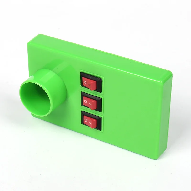Enhance your physics education with this compact Optical Experiment Equipment featuring three primary colors of light, model LD2784. Encased in a vibrant green plastic housing, the device boasts a sleek rectangular design with a circular light projection component and three black switches with red-topped buttons for easy operation. It allows visual demonstrations of color and light principles through projected semi-transparent arcs in green, light blue, and purple hues. Lightweight and portable, it is perfect for school laboratory experiments, providing a clear and engaging way to explore optics. Please note, batteries are required and not included, allowing customization for your specific setup.