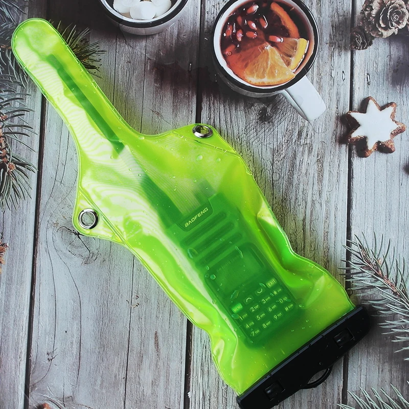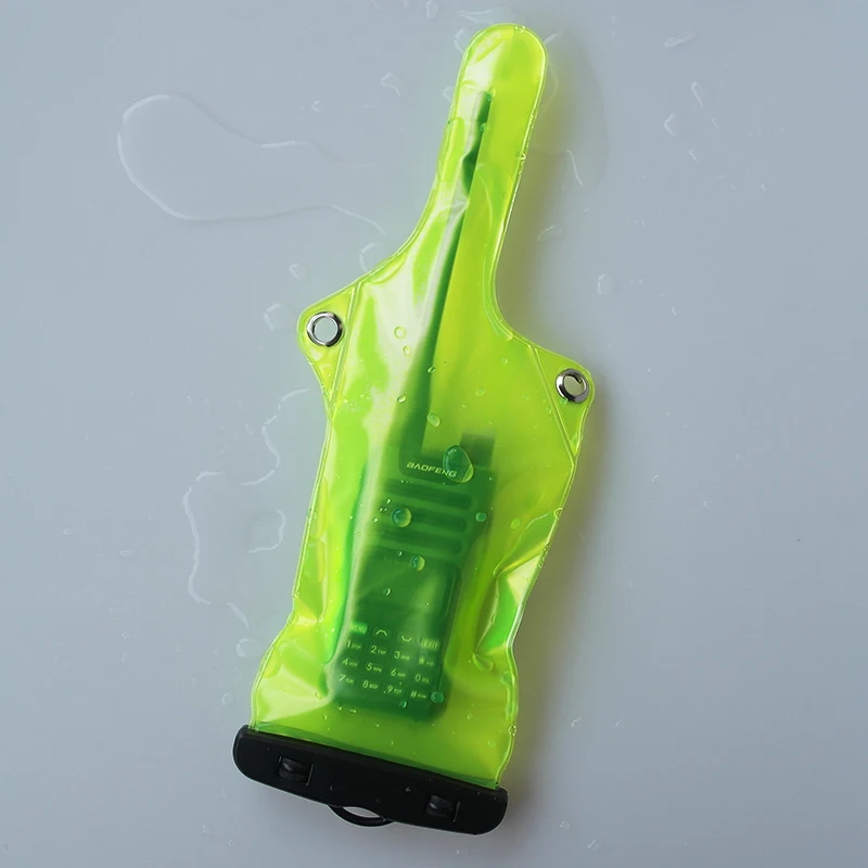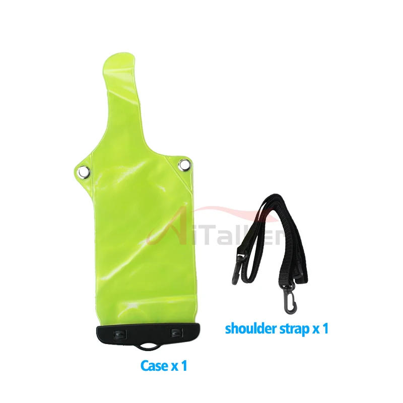 Experience peace of mind with this vibrant green waterproof bag, designed specifically to protect your walkie-talkie or mobile phone from water, dust, and oil. Made from environmentally friendly PVC, it’s flexible, durable, and resistant to wear, ensuring long-lasting protection during all your outdoor adventures. Its transparent design allows you to see your device easily, while the sleek, slightly tapered shape offers a modern, minimalist look. Whether you're swimming, at the water park, or caught in the rain, this lightweight, portable bag keeps your electronic devices safe and dry. The included black lanyard makes it easy to carry or wear around your neck, giving you hands-free convenience when you need it most. This bag is essential for outdoor enthusiasts who value protection and visibility.
